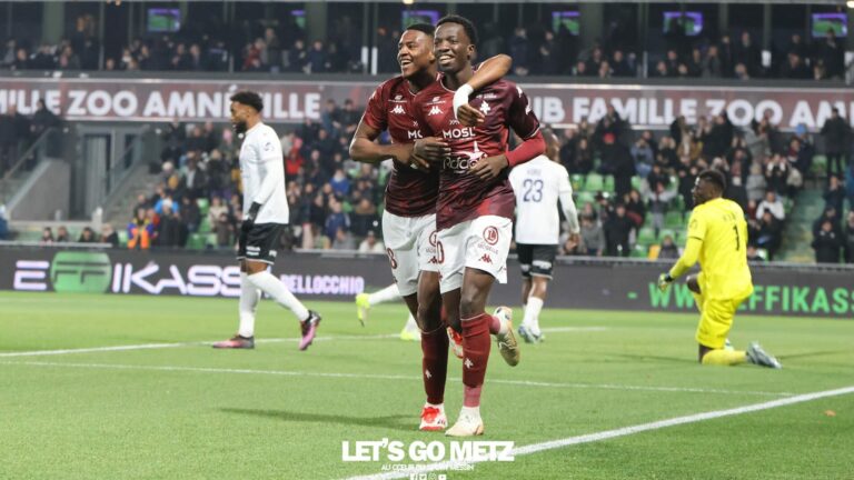 1,8K Le FC Metz a alterné le bon et le moins bon face au Clermont Foot 63, mais décroche un précieux succès (3-1) lors de la 22e journée de Ligue 2 BKT. Une bonne opération, dans un match assez maîtrisé, après les victoires parisienne et lorientaise. Le FC Metz avait la pression, avant d’affronter le Clermont Foot 63 samedi soir. Les Grenats se devaient de retrouver le succès, après les victoires du Paris FC et du FC Lorient, afin de ne pas voir leurs deux principaux concurrents à la montée se détacher au classement de Ligue 2 BKT. La mission a été accomplie avec brio par les hommes de Stéphane Le Mignan, qui se sont imposés 3-1 face à leurs homologues auvergnats auteurs de grossières erreurs. Débuts tonitruants Cela devient un gros point fort du club à la Croix de Lorraine devant son public, cette saison en Ligue 2 BKT. Très présents pendant les vingt premières minutes du match, notamment grâce à un pressing haut et intense, les Messins ont poussé les protégés de Laurent Batlles à la faute. Papa Amadou Diallo profitait d’abord d’une énorme boulette de Massamba N’Diaye pour ouvrir la marque (1-0, 4′).Quelques instants plus tard, Cheikh Tidiane Sabaly doublait la mise (2-0, 18′) grâce à un service parfait… de Maïdine Douane, qui manquait complètement sa remise en retrait, pour le plus grand plaisir de l’attaquant sénégalais qui s’offrait son 10e but de la saison en Ligue 2. Une malchance terrible pour l’ancien Messin, qui aurait pu jouer un bien mauvais coup à son club formateur sans un Arnaud Bodart vigilant (7′). Idrissa Gueye buteur, et blessé… Froidement efficace et pas du tout mis en danger, le FC Metz menait tranquillement à la pause (2-0) face à son adversaire clermontois. Trop tranquillement… Les Grenats tombaient dans un faux rythme et comme Maïdine Douane en première mi-temps, Koffi Kouao se trouait complètement et offrait sur un plateau la réduction du score à Mons Bassouamina (2-1, 53′). Un léger moment de flottement avant un but plein d’instinct d’Idrissa Gueye, qui reprenait sans contrôle un bon ballon de Gauthier Hein (3-1, 69′).Un véritable coup de canon du joueur formé à Génération Foot, qui mettait le FC Metz à l’abri. Une avance que les Messins conservaient sans trop de soucis, au gré, notamment, de sorties bien senties d’Arnaud Bodart loin de son but. Seul point noir de la soirée, la très inquiétante sortie sur civière d’Idrissa Gueye dans les derniers instants de la rencontre… Secoué à Bastia, le FC Metz a parfaitement rebondi, démontrant une nouvelle fois qu’il était pratiquement imprenable à domicile, face à un Clermont Foot 63 qui ne s’est montré que trop peu dangereux. Les Grenats signent leur troisième succès consécutif à Saint-Symphorien avec au moins trois buts inscrits, et poussent leur série d’invincibilité en Ligue 2 BKT à onze matchs. FC Metz 3-1 Clermont Foot 63 Mi-temps : 2-0. Buts pour le FC Metz : Diallo (4’), Sabaly (18’), Gueye (69’) ; pour le Clermont Foot 63 : Bassouamina (53’).FC Metz : Bodart – Kouao, S.Sané, Mboula, Udol (cap) – Hein, Stambouli, Deminguet (Touré 81’), Diallo (Bokele 81’) – Gueye (Asoro 90+3), Sabaly (I.Sané 71’)Clermont Foot 63 : Ndiaye – M’Bahia (Armougom 65’), Koré, Salmier, Diallo – Gastien (cap) – Konaté (Baaloudj 57’), Keita, Diagouraga (Diedhiou 57′), Douane (Fakili 86’) – Bassouamina Crédit photo : Stephan Weyrath / Let’s Go Metz