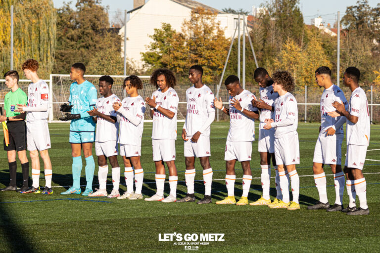 317 Le FC Metz affrontera bien Torcy en 16e de finale de la Coupe Gambardella. Le Racing Besançon, que les Grenats avaient battu 6-3 au tour précédent, avait déposé une réserve qui s’est avérée infructueuse. Le FC Metz a brillamment battu le Racing Besançon, 6 buts à 3, en 32e de finale de Coupe Gambardella. C’est avec stupeur que les protégés d’Emmanuel Giudicelli ont appris ce jeudi, en amont du tirage au sort des 16e de finale de la compétition, que le club doubiste avait déposé une réserve, pour des raisons encore inconnues. La FFF faisait ainsi figurer la mention « Racing Besançon ou FC Metz » sur ses différentes communication. La réserve bisontine s’est finalement avérée infructueuse. Le FC Metz recevra donc Torcy en 16e de finale de la compétition, dimanche 29 janvier. Crédit photo : Julien Buret/LGM
