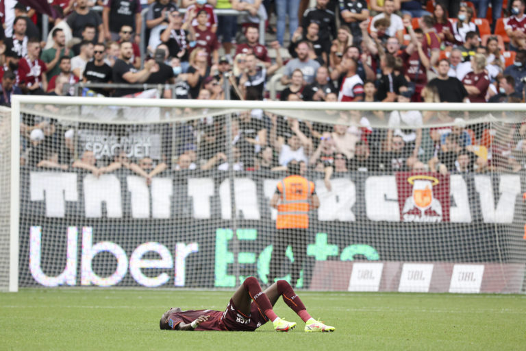 480 Ce dimanche, le FC Metz s’est incliné 2-0 à domicile face à l’ESTAC, qui ne comptait pourtant aucune victoire cette saison. Les Grenats restent englués à une bien triste 18ème place avec 3 points (3 matchs nuls). De mauvaise augure avant le derby de l’Est à la Meinau face à Strasbourg. A l’occasion de la 5ème journée de Ligue 1, le FC Metz recevait l’ESTAC au Stade Saint-Symphorien dans un duel de mal classés. Au terme d’une prestation largement insuffisante, le club à la Croix de Lorraine a laissé filer la victoire à Troyes (0-2). Les troyens ne comptabilisaient pourtant pas le moindre succès avant ce déplacement à Metz.Mis à part une barre transversale de Pape Matar Sarr (14′) et une action litigieuse de Fabien Centonze (81′) qui aurait pu prévaloir un pénalty, le FC Metz ne s’est jamais réellement montré dangereux ce dimanche après-midi. En témoignent les statistiques de la rencontre, avec une possession stérile des Grenats et un ratio famélique de 2 tirs cadrés en 16 tentatives. Crédit : FC Metz FC Metz – ESTAC : Des pistons rouillés Positionnés sur les côtés dans le désormais traditionnel 3-5-2 de Frédéric Antonetti, Thomas Delaine et surtout Fabien Centonze n’ont guère été à leur avantage. L’entraîneur troyen Laurent Batlles a littéralement annihilé les velléités des latéraux messins.En effet, également adepte du 3-5-2, l’ancien joueur de l’ASSE a contrecarré les plans de Frédéric Antonetti. Biancone à gauche et Kaboré à droite ont étouffé Centonze et Delaine, bien seuls dans leur couloir. Symptomatique de l’impuissance messine.Orphelins d’un vrai numéro 10 (Boulaya ? Bassi ?), les Grenats ont été bien trop prévisibles face à Troyes, à l’image de leur début de saison… Ce système qui faisait leur force l’an dernier est peut-être aujourd’hui leur plus grande faiblesse. Des ajustements sont maintenant attendus de manière urgente. Fabien Centonze, annihilé par Giulian Biancone, ne s’est jamais montré à son avantage ce dimanche. (Photo : ElyxandroCegarra/Panoramic) FC Metz – ESTAC : Une naïveté défensive horripilante Dominateurs pendant plus d’une mi-temps, les messins se sont fait surprendre à la 50ème minute. La faute à un contre troyen, jamais arrêté par la défense du FC Metz. La défense grenat, emmenée par Bronn, Udol et Kouyaté, a semblé totalement perdue sur l’ouverture du score.Les trois centraux messins n’ont jamais été capables de compenser l’erreur de leur partenaire au cours de l’action. Pire encore, Matthieu Udol était bien loin du buteur Gerson Rodrigues. Une nouvelle faute de marquage pour le gaucher messin, après une action du même type à Clermont.Coup de grâce, le second but troyen inscrit par Chavelerin (84′) incrimine le capitaine Dylan Bronn. Coupable et passif, il laisse filer le milieu de terrain de l’ESTAC, qui n’avait plus qu’à punir un Alexandre Oukidja abandonné par les siens. Frédéric Antonetti, sans solutions face à l’ESTAC. (Photo : ElyxandroCegarra/Panoramic) Un derby de la peur pour (enfin) décoller A l’issue de la piètre prestation des leurs, les supporters du FC Metz ont (déjà) fait comprendre à leurs joueurs tout leur mécontentement. Unis, les joueurs messins sont allés aux devants de leurs fans après cette triste défaite. Comme une manière de montrer toute leur implication malgré la mauvaise tournure des événements.En effet, si certains jugeront que le dévouement des joueurs messins n’est pas total, il est difficile de penser qu’il font preuve de mauvaise volonté. Cependant, il faudra déjà montrer un autre visage dès vendredi prochain sur la pelouse de Strasbourg. Les Grenats pourront s’appuyer sur la maigre éclaircie entrevue par l’entrée de Nicolas De Préville. Tout autre résultat qu’une victoire à la Meinau plongerait le FC Metz de Frédéric Antonetti dans un brouillard très épais.