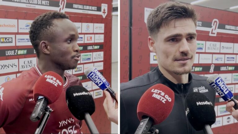 1,9K Le FC Metz s’est imposé ce vendredi soir face à Grenoble (3-0). Après cette prestation aboutie, retrouvez les principales réactions des Grenats, livrées à l’issue de la rencontre. C’est une bonne opération que vient de réaliser le FC Metz une nouvelle fois face à Grenoble. Après une prestation convaincante samedi dernier face au Paris FC (3-1), les Grenats ont réussi à enchaîner à domicile ce vendredi. Pourtant, la rencontre avait tout du piège, face à un adversaire moins bien classé, mais les Messins ont su bien négocier leur rencontre et imposer leur loi sur le terrain. Retrouvez en vidéo les réactions de Cheikh Sabaly et de Jessy Deminguet à l’issue de la rencontre. Propos recueillis par Mehdi Abirez et Arthur Carmier.