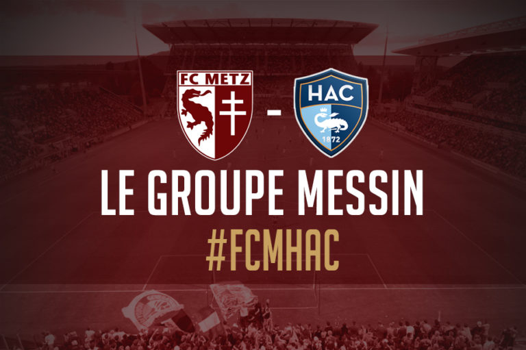 329 Ce samedi à 15H00, les grenats recoivent Le Havre pour le 9e journée de Ligue 2. Découvrez le groupe convoqué par Frédéric Antonetti. Gardiens Delecroix, Oukidja Défenseurs Sunzu, Delaine, Fofana, Jans, Rivierez, Boye, Balliu Milieux Boulaya, Cohade, Gakpa, Angban, Monteiro Attaquants Niane, Diallo, Traoré, Rivière FC Metz – Le Havre Samedi 29 Septembre 2018 à 15H00 En direct sur BeinSports 1 .
