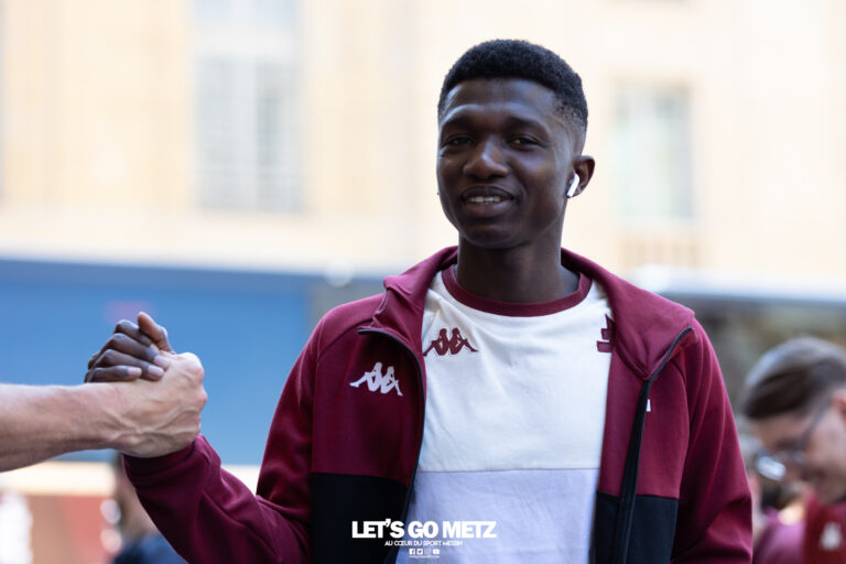 8,5K Le dossier Lamine Camara prend de l’importance dans le mercato estival du FC Metz. La direction messine attend un montant de plus de 10 millions d’euros pour son jeune milieu de terrain. Sans aucun doute, la vente de Lamine Camara entrera dans l’histoire des plus gros transferts du FC Metz. Après Georges Mikautadze et Matthieu Udol, un nouveau grenat est l’objet de convoitises. Selon le média Foot Mercato, le FC Metz aurait refusé une offre de 10 millions d’euros de la part de Southampton pour Lamine Camara. Plusieurs autres clubs seraient intéressés par le milieu sénégalais, parmi lesquels ne figure pas le FC Barcelone, malgré quelques rumeurs ces derniers jours. Le montant exigé par les dirigeants messins semble avoir mis un terme aux discussions avec le club catalan. 🚨EXCL #PremierLeague 🇸🇳🆕la pépite Lamine Camara a fait l'objet d'une offre de 10 M€ de la part de Southampton▶️Le FC Metz a refusé et veut plus d'argent▶️aucun interêt du Barça, mais d'autres clubs à l'affûthttps://t.co/yrqPb2gOzO@Santi_J_FM pic.twitter.com/O5aHHTtTu8— Sébastien Denis (@sebnonda) July 12, 2024 Sébastien Denis, rédacteur en chef de Foot Mercato Un parcours éclair Sorti de Génération Foot, l’antenne du FC Metz au Sénégal, Lamine Camara avait disputé ses premiers matchs dans le club de la Croix de Lorraine en fin de saison 2022-2023. Mais c’est durant cette campagne 2023-2024, en Ligue 1, que Lamine Camara a vraiment mis en éclat tout son talent. En 33 matchs, il a inscrit deux bus et délivré cinq passes décisives. Aussi bien par sa présence physique que ses capacités techniques, Lamine Camara a attiré bien des regards sur lui. Le milieu de terrain du FC Metz a aussi été grandiose au cours de la Coupe d’Afrique des Nations (CAN), où il a notamment inscrit deux buts en trois matchs. Symbole de tout son talent, Lamine Camara a reçu en 2023 le trophée du meilleur jeune joueur africain de l’année. Lamine Camara. Photo : Julien Buret/LGM Un montant historique ? Si Lamine Camara venait à partir pour plus de 10 millions d’euros, l’opération deviendrait l’un des cinq transferts les plus chers de l’histoire du club. Même si la descente en Ligue 2 ne met pas le FC Metz dans une position de force pour négocier, le jeune âge de la pépite sénégalaise (20 ans) constitue un argument indéniable. Photo à la Une : Julien Buret / Let’s Go Metz