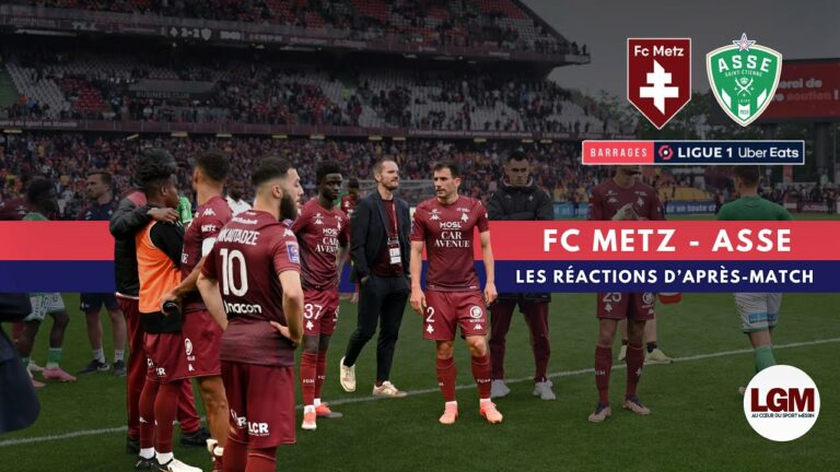 2,6K Après le match nul du FC Metz face à l’ASSE lors du barrage retour de Ligue 1 (2-2, 3-4 cumulés), découvrez les réactions de Bölöni, Udol et Dréossi à l’issue de la rencontre. Un an seulement après l’avoir retrouvée, le FC Metz quitte déjà la Ligue 1 et retrouve la Ligue 2. Le match nul lors du match retour des barrages de Ligue 1 Uber Eats (2-2) a condamné les Grenats à la descente à l’échelon inférieur. Retrouvez les réactions des acteurs de la rencontre sur notre chaîne Youtube. Le compte rendu de la rencontre est à retrouver dès maintenant sur letsgometz.com Propos recueillis par Mehdi Abirez et Gérald Russello