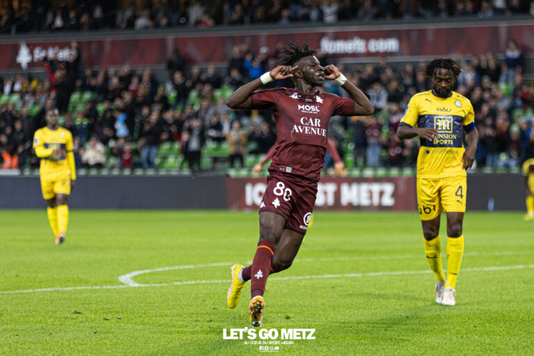 439 Le FC Metz a résisté aux assauts de Pau ce samedi à Saint-Symphorien. Peu en vue dans le jeu, les Grenats se sont tout de même imposés 1-0 contre des Palois très en jambes. Une victoire courte, mais importante pour relancer la machine dans ce sprint automnal. Le FC Metz aurait pu se faire punir plusieurs fois contre Pau. Ce samedi 1er octobre à Saint-Symphorien, les Messins se sont amusés à fêter Halloween avant l’heure avec leurs supporters. Côté compo, Laszlo Boloni a pioché du côté de la réserve pour trouver son numéro 9 en l’absence d’Ibrahima Niane. C’est Amadou Dia N’diaye, prêté au Mans l’an passé, qui était en charge de la pointe de l’attaque. Sa première titularisation en Ligue 2. Le reste du onze était très classique avec le retour d’Oukidja dans les buts. #FCMPAUFC [ ℙ𝕣𝕠 ]🔥 Le 1️⃣1️⃣ de départ grenat vous est présenté par @GroupeH2 ! Héraclès Sécurité 👉 https://t.co/gFrcRQWizk pic.twitter.com/dAc6H8GErw— FC Metz ☨ (@FCMetz) October 1, 2022 Un nouvel espoir La partie commençait bien pour les Grenats. Actifs sur le plan de l’attaque, les Messins se mettaient rapidement en place dans le camp béarnais. Les 15 premières minutes furent entièrement à l’avantage des Mosellans. Les efforts étaient même récompensés par le premier but d’Amadou Dia N’Diaye, après une grosse erreur de Kouassi. La frappe limpide pleine lucarne libérait Saint-Symphorien et laissait entrevoir une belle soirée. En plus de son but, le Sénégalais de 22 ans s’est plutôt bien adapté à la Ligue 2. Présent techniquement et physiquement, il n’a pas hésité à se jeter dans la bataille. Bien que souvent seul, comme souvent pour les récents numéros 9 grenats, Dia N’Diaye s’est montré précieux dans le jeu, participant énormément. S’il n’a sans doute pas de quoi réaliser un match en intégralité, il a prouvé que le coach pourrait compter sur lui à l’avenir. Ablie Jallow et Amadou Dia N’Diaye Un FC Metz peu entreprenant Mais le match n’a pas été une balade tranquille. Baissant rapidement d’intensité, c’est bien Pau qui a dominé le FC Metz au niveau des occasions. Souvent surpris et pris à revers, le côté gauche défendu par Fali Candé et Matthieu Udol n’a pas vraiment rassuré. Les espaces dans le dos du lusophone ont donné plusieurs opportunités aux Palois, sans jamais trouver le cadre d’Oukidja. La défense n’a pas été sereine de manière générale. Voulant souvent jouer à terre pour se relancer, l’arrière garde s’est mise en danger et fût plus proche de se brûler que l’inverse. Un problème qui n’a pas été fatal contre Pau, mais qui pourrait l’être contre des adversaires plus adroits devant comme pourront l’être Bordeaux ou Sochaux. Georges Mikautadze Décevants devant Encore une fois, l’animation offensive laissait clairement à désirer après le premier quart d’heure. Sur le reculoir, les Grenats ne se sont montrés que très peu de fois dangereux. Malgré des bonnes situations, les frappes n’arrivaient pas, ou étaient trop molles pour tromper Olliero. Les ailes furent comme toujours très actives, mais sans exploit individuel, les occasions ont été rares, et les combinaisons collectives trop peu efficaces. Si Kouao et Udol se relayaient pour monter d’un cran, leur apport offensif n’était pas tant visible que ça. Le FC Metz fait face à un vrai problème qui pourrait ternir la suite de la saison si rien n’est trouvé pour y remédier. Dia N’Diaye est un premier élément de réponse, mais les mouvements et les combinaisons autours sont encore loin des promesses que le public a aperçu contre Amiens ou encore Valenciennes. L’absence de Maziz et le peu d’impact que trouve Bassi avec un temps de jeu limité souligne un gros manque dans le rôle d’un numéro 10, capable de dicter et d’emballer le jeu. Rôle que Maïga et N’Doram ont peiné à réaliser de derrière, avec encore une fois beaucoup de déchets de la part du second cité. Les grenats après le coup de sifflet final Les réactions Koffi Kouao : « Il y a des matchs où on on a bien joué et on a perdu, là on joue mal et on gagne. Défensivement on a fait ce qu’on voulait faire mais offensivement il va falloir encore travailler. Pour la confiance c’était important de prendre les 3 points, pour nous comme pour les supporters. A propos de son accueil à Metz : Je suis bien ici, j’ai été très bien accueilli, au fil du temps je trouve mes repères.» Koffi Kouao en zone mixte Georges Mikautadze : « On n’a pas fait notre meilleur match ce soir mais on est content d’avoir les 3 points. Pau a mieux joué que nous. Il va falloir continuer à travailler, regarder ce qui n’a pas fonctionné. Ce sont des matchs pièges mais on a les 3 points c’est le plus important. » Georges Mikautadze en zone mixte Laszlo Boloni : « Je crois qu’on a fait trop de matchs de bonne qualité sans gagner, aujourd’hui c’était le contraire. On n’a pas fait un match de haut niveau mais on a obtenu l’essentiel. Il faut travailler et corriger les manques. Amadou, c’est un joueur qui a des qualités. Physiquement c’est notre attaquant le plus puissant. Il est capable de faire des gestes surprenants devant le but. C’est un travailleur. Je crois en ses qualités. Je suis content pour lui et pour l’équipe. Il a été acclamé dans les vestiaires. » Laszlo Boloni en conférence de presse C’est une victoire sans la manière, mais une bonne victoire pour relancer l’équipe désormais 9e de Ligue 2. La réalité est que le FC Metz a eu énormément de mal face à Pau à domicile, et que le visage montré ne ressemble pas à un concurrent pour la monté. Les tests arrivent et vont s’enchaîner jusqu’à la Coupe du Monde. Un programme ultra chargé avec Bordeaux (E), Sochaux (D, HC), Le Havre (E), Saint-Etienne (D), puis le Paris FC (E). Soit cinq adversa