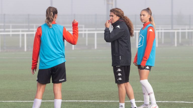 571 A quelques jours du derby de l’Est face à Strasbourg en D2 Féminine, la coach du FC Metz lance un appel au peuple grenat. Jessica Silva espère une grosse mobilisation des supporters pour ce match à domicile contre le rival alsacien. Quatrièmes à trois points du leader Lillois, les Messines recevront ce dimanche à 15h le Racing Club de Strasbourg Alsace. Un derby à domicile comptant pour la cinquième journée du championnat de France de deuxième division féminine que les protégées de Jessica Silva entendent bien remporter avec, si possible, le soutien de l’ensemble des supporters grenats. Les Strasbourgeoises talonnent les Messines au classement. Seuls deux petits buts séparent les deux formations dans ce début de championnat. Autant dire que ce derby est déjà capital dans la course à la montée. Les joueuses du FC Metz attentives au discours de Jessica Silva Avantage psychologique pour les Messines Messines et Strasbourgeoises se sont déjà affrontées cette année. C’était le 29 août lors du dernier match de préparation des grenats. Les Messines s’étaient imposées en terre alsacienne sur le score de 2-1 : « On connaît bien les joueuses, on connaît bien leur club et cette fois on joue à domicile. Il y aura énormément d’énergie pour ce match ». Si l’instinct de revanche sera présent chez les Strasbourgeoises, nul doute que les messines auront à cœur de briller une nouvelle fois devant leur public. Et encore plus particulièrement après le nul cruel concédé à Lens le weekend dernier : « Les filles sont très motivées à l’idée de pouvoir jouer ce match à domicile, surtout concernant la manière dont le match à Lens s’est terminé. On a vraiment envie de jouer ! » On a vraiment besoin de toute la ville derrière nous En marge de ce derby, l’association Symphonie sera présente au stade Dezavelle dans le cadre de l’opération Octobre Rose. Des animations seront proposées au public pour sensibiliser sur le dépistage et la lutte contre le cancer du sein. La météo s’annonce clémente et la ville de Metz animée ce dimanche. Tous les éléments sont réunis pour que la fête soit belle : « Il va y avoir le Marathon de Metz dimanche donc on encourage tous les gens à venir nous rejoindre à 15H pour soutenir notre club et notre ville ! C’est un derby, ça va apporter beaucoup d’excitation, en plus le beau temps sera au rendez-vous. Nous on sera à l’heure et on espère que tous les supporters et les curieux se présenteront à Dezavelle. » « On aimerait avoir plus de monde dans les travées de Dezavelle » Un appel au peuple qui n’a rien d’anodin pour Jessica Silva, très investie pour son club mais également dans l’opération Octobre Rose. La coach du FC Metz est revenue de Lens impressionnée par l’engouement du public sang et or. Elle espère voir les messins soutenir ses joueuses avec autant de passion : « A Lens, les spectateurs et les groupes de supporters lensois ont mis l’ambiance. Nous avons vraiment besoin de toute la ville derrière nous, que les gens viennent vibrer avec nous. On a besoin du 12e homme. L’équipe pro ne joue pas, c’est l’occasion d’être présent dimanche. » Jessica Silva qui rêve d’une tribune Dezavelle remplie et toute à la cause des messines. Et surtout une mobilisation des groupes ultras. Après tout, le FC Metz ce n’est pas qu’une seule équipe, c’est une grande famille : « On a besoin d’eux autant que des trois points. De l’énergie et un beau spectacle ! Après le match de Lens on s’est dit qu’on aimerait avoir plus de monde dans les travées de Dezavelle. Devenir une équipe difficile à jouer et que les adversaires aient peur de venir ici. » Marjorie Boilesen Les supporters grenats entendront-ils l’appel ? Réponse dimanche 15h00 au Stade Dezavelle. Entrée au tarif unique de 5€. Et elle sera gratuite pour les abonnés 2021-2022 sur présentation d’une confirmation de commande. Présentation d’un pass sanitaire en cours de validité obligatoire. Propos recueillis par Gérald Russello – Crédit photos : Julien Buret/LGM