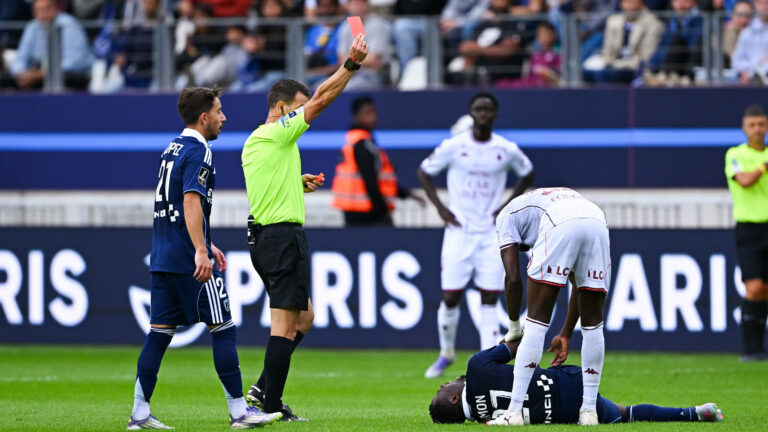 3,5K La commission de discipline inflige une lourde sanction au défenseur messin Sadibou Sané après son carton rouge reçu face au Paris FC. L’addition est salée pour Sadibou Sané et le FC Metz. Réunie ce mercredi 3 septembre, la commission de discipline de la LFP a tranché au sujet de l’expulsion du défenseur sénégalais. Il écope d’une suspension ferme de trois matches suite à son carton rouge reçu face au Paris FC, pour faute dangereuse sur Moses Simon. Sadibou Sané manquera plusieurs rencontres : J4 : FC Metz – Angers SCO J5 : AS Monaco – FC Metz J6 : FC Metz – Le Havre AC Privé de Sadibou Sané, pilier de la charnière centrale, le FC Metz est contraint de revoir son organisation défensive. Heureusement, le club a profité de la fin du mercato pour renforcer ce secteur. Stéphane Le Mignan pourra s’appuyer sur deux nouvelles recrues, le latéral gauche Fallo Ballo-Touré et le défenseur central Terry Yegbe. Des renforts tardifs mais rassurants pour les Messins qui ne se retrouveront pas sans solution en l’absence de leur défenseur. Image à la une : Baptiste Fernandez/Icon Sport