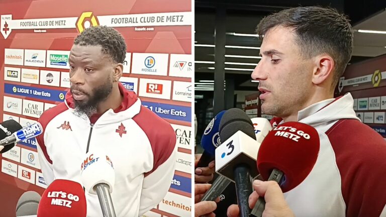 2,1K Le FC Metz s’est incliné (2-3) ce samedi à domicile face au Stade Rennais, retrouvez dès à présent les réactions de Maxime Colin et d’Ismaël Traoré en zone mixte à l’issue de la rencontre. La majorité des réactions l’ont été à propos de l’arbitrage, qui a une nouvelle fois fait débat à Saint-Symphorien lors de la défaite du FC Metz face au Stade Rennais. Maxime Colin et Ismaël Traoré sont revenus sur les principaux faits de jeu, avec un pénalty litigieux et l’expulsion de Georges Mikautadze. La réaction de Maxime Colin après FC Metz – Stade Rennais : « C’est très dur à encaisser » « On a montré que l’on voulait se battre, et rester dans cette division. Je pensais que l’on allait repartir avec quelque chose, mais avec rien, ça fait très mal. Il y a eu des décisions arbitrales plus que litigieuses. À 2-1, il siffle un pénalty que je trouve très contestable. Il n’y avait aucun moyen que Kalimuendo puisse marquer, donc ce n’est même pas une action de but. Après, on essaie de pousser, et même sur Mikautadze, mettre un carton rouge là dessus, c’est incroyable. » Retrouvez la réaction complète sur YouTube. Ismaël Traoré : « Je ne sais même pas comment décrire cette fin de rencontre » « On a un sentiment d’injustice, que ce soit sur le penalty ou pour le carton rouge. On sait que l’on peut compter que sur nous, on va se battre avec nos armes et on verra ce que ça donnera. Tout le monde a vu ce qu’il s’est passé. Il n’y a pas d’abattement, comme je l’ai dit, on se battra jusqu’à la fin. Ce soir, je pense que l’on s’est bien battus. On a respecté les consignes, on a joué avec nos qualités et on y a mis du coeur. On a été récompensés, mais pas sur cette fin de match. Ça tue ce que l’on avait essayé de construire. » Retrouvez la réaction complète sur YouTube. Crédit photo : Mikael Franck / Let’s Go Metz