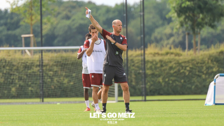 4,2K À deux jours d’un déplacement capital sur la pelouse du PFC, Stéphane Le Mignan s’est présenté à la presse pour évoquer cette période si particulière de fin de mercato. Le FC Metz s’apprête à disputer un match très important ce dimanche sur la pelouse du Paris FC, autre promu mal en point au classement, puisque les Parisiens ont également perdu leurs deux premiers matchs. Dans un contexte tendu en cette fin de mercato, le coach grenat, Stéphane Le Mignan, sait que son effectif ne sera ni complet ni définitif au stade Jean Bouin. Et pour cause : outre les blessés comme Michel Mboula, Malick Mbaye, Joseph Mangondo et Ousmane Ba, d’autres joueurs pourraient manquer à l’appel. Quant à Cheikh Sabaly, dont les velléités de départ se confirment de jour en jour malgré son retour de grève cette semaine, son entraîneur compte sur lui, tout autant que sur les autres joueurs de l’effectif. #PFCFCM 🎙️💬 𝗦𝘁𝗲́𝗽𝗵𝗮𝗻𝗲 𝗟𝗲 𝗠𝗶𝗴𝗻𝗮𝗻 évoque les forces en présence. pic.twitter.com/K20EAiE2dN— FC Metz ☨ (@FCMetz) August 29, 2025 À noter que l’attaquant sénégalais, recadré dans la presse par le directeur sportif Frédéric Arpinon, n’a pas encore fait l’objet de sanction. « Évidemment, c’est condamnable quand on ne s’entraîne pas. Maintenant, il y a des explications à avoir, même si, évidemment, on est toujours avec la volonté que tous les joueurs soient tous disponibles pour le club tant qu’ils sont salariés », confirme Stéphane Le Mignan. « Des fois, il y a beaucoup de bruit pour peu de choses » Le coach breton du FC Metz a déploré le contexte très lourd qui entoure ce déplacement ô combien important sur la pelouse du PFC. Une fin de mercato qui semble perturber fortement ses joueurs. D’autant qu’en coulisses, cela semble moins s’agiter que sur la toile. « Le mercato prend des ampleurs depuis quelques temps, évidemment, par rapport à vous, les médias, mais aussi par rapport à l’environnement des joueurs. Des fois, il y a beaucoup de bruit pour peu de choses, et ça perturbe le joueur, c’est naturel », explique Stéphane Le Mignan. Et d’ajouter : « Il faut que les joueurs soient solides pour continuer à se concentrer sur le terrain. Je pense que pour certains, c’est vraiment difficile à gérer. Il y a des gestes d’humeur, des décisions, à l’image de Cheikh Sabaly la semaine dernière, des positions qui sont peut-être influencées aussi par l’extérieur ». « À deux jours du match, il peut y avoir des mouvements » Du poste de latéral gauche en passant par celui d’avant-centre, les dossiers ouverts sont nombreux pour le club à la Croix de Lorraine, et loin d’être évidents à boucler, comme celui du retour espéré de Habib Diallo, comme l’explique Stéphane Le Mignan : « Il y a des discussions, des négociations entre le club, l’ancien club et le joueur, et les entourages. Donc voilà, ça fait beaucoup de monde. C’est peut-être plus complexe parce que ce sont des pays qui sont un peu lointains ».Toute cette incertitude va se faire ressentir sur le groupe qui sera convoqué dimanche, puisque certains joueurs sont susceptibles de partir entre l’arrivée du contingent grenat samedi à Paris et le coup d’envoi du match dimanche. « En trois jours d’ici lundi 20h00, il peut se passer beaucoup de choses. Des joueurs peuvent être prêtés pour gagner du temps de jeu. À Paris, peut-être qu’on partira avec un peu plus d’hommes. Au-delà des stratégies de jeu qu’on doit mettre en place contre le PFC, il y a l’incertitude des joueurs qui modifie forcément la tactique », déplore le coach breton. Le FC Metz doit retrouver du mordant en attaque Les hommes de Stéphane Le Mignan n’ont toujours pas marqué de but depuis le début du championnat. Mais si le derby pouvait inquiéter à ce sujet, quelques beaux mouvements ont été aperçus lors de la dernière rencontre, malgré la lourde défaite à Lyon. Pour l’entraîneur grenat, ses joueurs doivent capitaliser dessus. « Je crois qu’il y a eu des choses positives dans ce sens-là, mais il ne faut pas que ça soit au détriment d’une qualité défensive qu’on a eue quelques jours avant contre Strasbourg. J’espère que ça a donné confiance aux joueurs. Il faut leur montrer qu’il y a des choses à faire, et pas simplement contenir l’adversaire ».L’attaque muette et inoffensive du FC Metz lors de ces deux dernières rencontres face à des adversaires de niveau européen n’est pas non plus une tragédie, mais il va falloir travailler dessus et redresser rapidement la barre, sous peine de vivre une nouvelle saison cauchemardesque en Ligue 1. « On a peu de situations pour marquer des buts depuis deux rencontres, même si la possession de balle était un peu plus forte contre Lyon et qu’on a réussi à faire des déséquilibres. La différence entre Lyon et nous, notamment sur ce match-là, c’est que les déséquilibres que Lyon a réussi à se créer ont été concrétisés par des buts ou des occasions. On a créé des déséquilibres, mais on n’a pas réussi à être dangereux ». Voilà donc l’un des axes d’amélioration attendus par Stéphane Le Mignan dimanche, en espérant que son équipe soit la plus complète possible. Crédit photos : Stéphan Weyrath/Let’s Go Metz