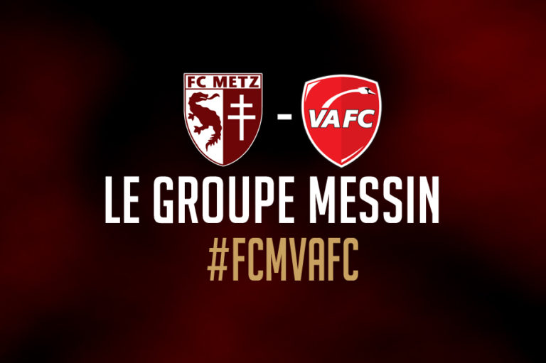 324 Ce vendredi à 20H00, les grenats reçoivent le VAFC pour la 36e journée de Ligue 2 . Découvrez le groupe convoqué par Vincent Hognon. Gardiens Delecroix, Oukidja Défenseurs Boye, Balliu, Rivierez, Jans, Sunzu, Delaine Milieux Fofana, Cohade, Maïga, Gakpa, Boulaya, Angban, Nguette Attaquants Niane, Dia N’Diaye, Diallo FC Metz – Valenciennes FC Vendredi 03 Mai 2019 En direct sur beIN SPORTS MAX 1 ou 7