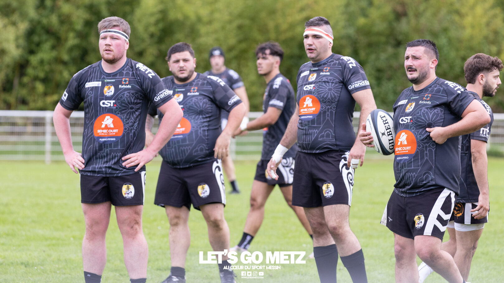369 Dans le cadre de la quatrième journée de Fédérale 3, le Rugby Club Metz Moselle n’est pas passé loin de la victoire sur la pelouse du RC Haguenau. Les Noirs doivent finalement se contenter du nul (31-31). Auteurs d’un début de saison poussif, le RC Metz pouvait frapper un gros coup en battant le RC Haguenau à l’extérieur. Cela permettrait de retrouver un bilan à l’équilibre avec deux victoires et deux défaites. Une bonne opération vu le calendrier difficile des messins sur les premières semaines. Un craquage en fin de match Le RC Metz et le RC Haguenau ont offert aux supporters haguenoviens présents un festival offensif. Les Noirs lançaient le bal avec un essai de l’arrière Ayoub Ait El Kaïd (0-5, 14′). Puis l’ouvreur Gérard Sanchez faisait le break avec une pénalité (0-8, 21′). Haguenau ouvrait son compteur, avant que le RC Metz maintienne l’écart de huit points à la mi-temps grâce à David Gianoli (5-13, 38′). Mais la deuxième période s’annonçait difficile pour les Messins, avec un carton rouge (41′) et un carton bleu (41′). Les hommes de Hans Grobler devraient jouer tout le reste du match en infériorité numérique. Deux essais haguenoviens les plaçaient en tête à la 51e minute (17-13). Mais les Lorrains faisaient preuve de combat. Un essai transformé de Rémy Guerimand Bugmann (55′, 17-20), puis deux pénalités (63′, 17-26). Un essai de l’ailier Simon Strentz semblait définitivement scellé la victoire des Messins (66′, 17-31). Mais la défense du RC Metz craquait complètement en fin de match. Dans les arrêts de jeu, Haguenau inscrivait deux essais transformés pour égaliser (80′, 31-31). Une manière cruelle pour le RC Metz de laisser encore du terrain par rapport au haut du classement. Dimanche 19 octobre, le RC Metz Moselle sera de retour à domicile, pour affronter le Strasbourg Alsace Rugby. Crédit photo (archives) : Matthieu Henkinet / Let’s Go Metz RC Haguenau 31-31 RC Metz Moselle RC Haguenau Essais : Tevita Fonua (31′) ; Samuel Laouniou (49′) ; Elie Auroux (51′) ; Victor Jung (80′) ; Etienne Quiniou (80′)Transformations : Max Regnier (49′, 80′, 80′) RC Metz Essais : Ayoub Ait El Kaïd (14′) ; David Gianoli (38′) ; Rémy Guerimand Bugmann (55′) ; Simon Strentz (66′)Pénalités : Gérard Sanchez (21′, 61′, 63′)Transformations : Gérard Sanchez (55′) Classement Fédérale 3
