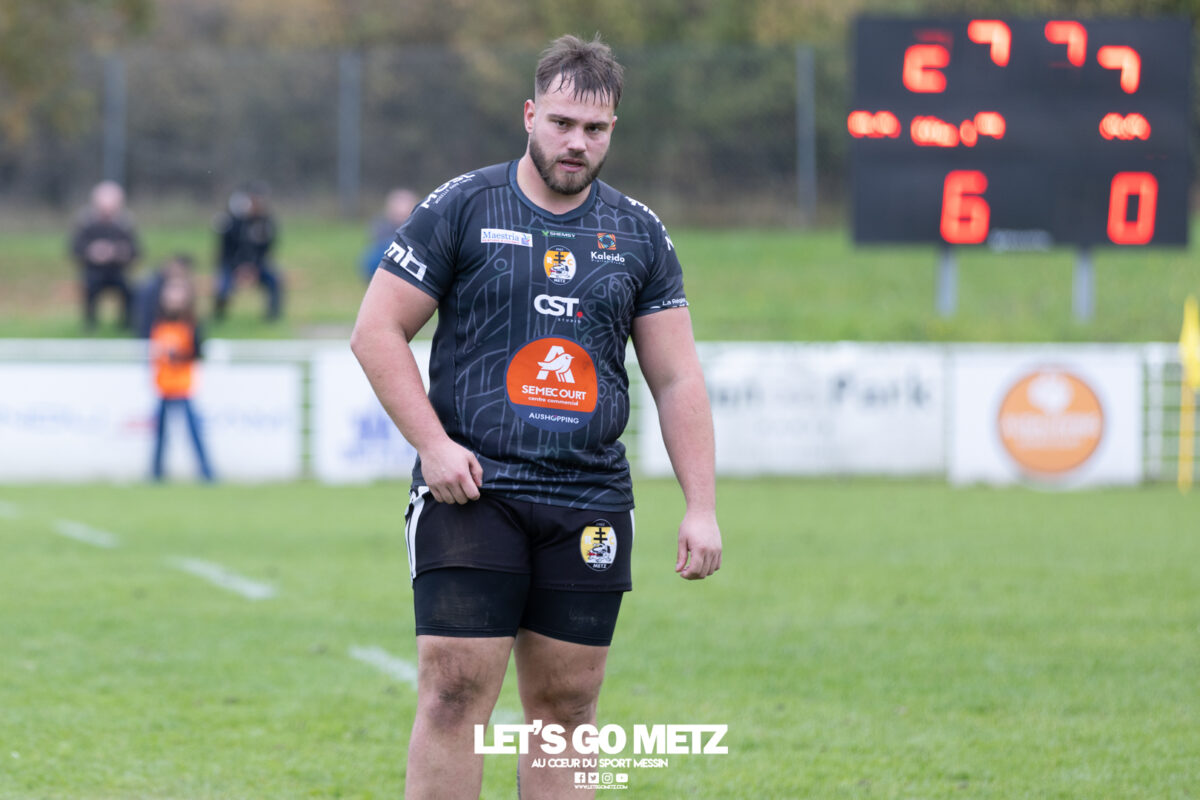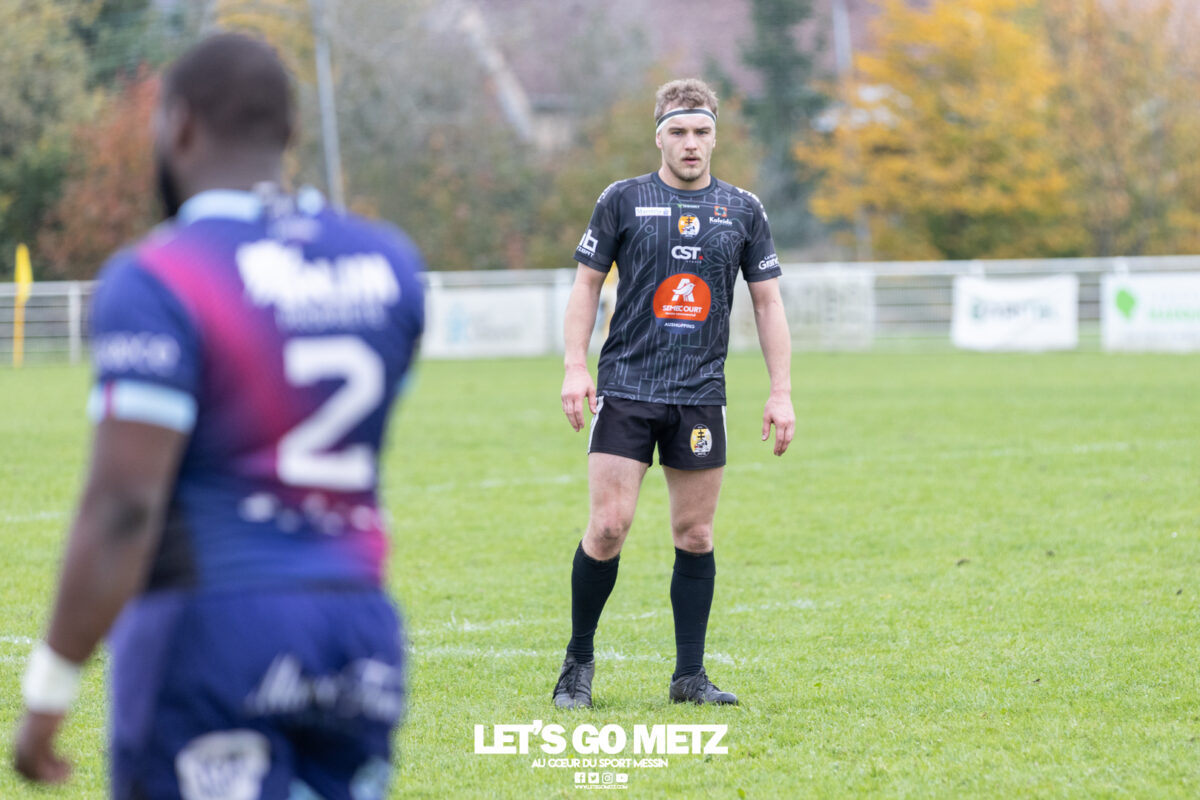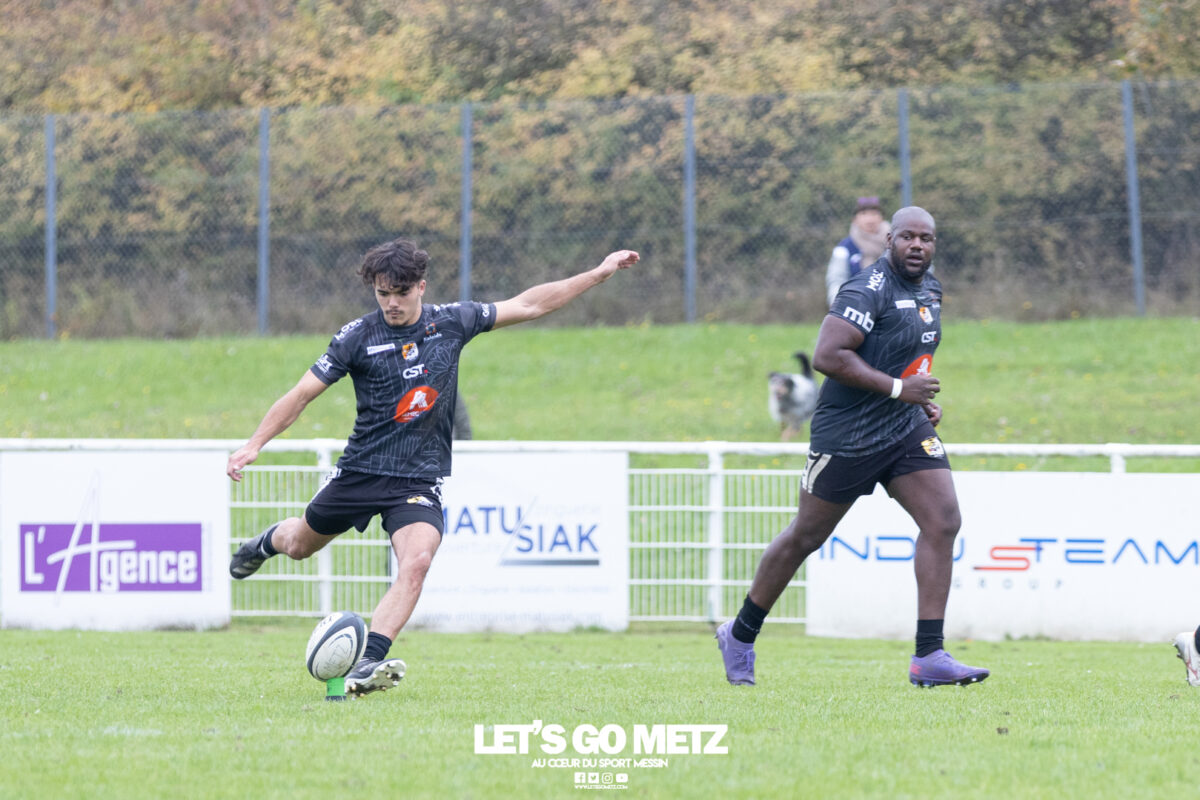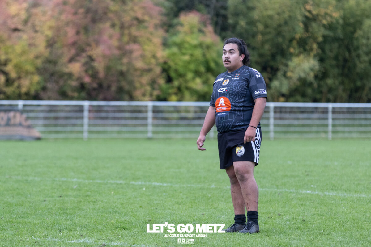 234 À l’occasion de la cinquième journée de Fédérale 3, le RC Metz Moselle recevait le Strasbourg Alsace Rugby. Malgré une bonne première mi-temps, les Messins s’inclinent 12 à 34. Une semaine après son match nul à Haguenau (31-31), le RC Metz Moselle avait l’opportunité de s’imposer à domicile face à un autre rival alsacien, Strasbourg. Les Strasbourgeois de Ludovic Mercier n’avaient pas encore remporté un seul match cette saison (3 matchs, 3 défaites). Une première mi-temps prometteuse pour Metz Crédit Photo : Matthieu Henkinet/Let’s Go Metz Après un début de match intense physiquement, le RC Metz ouvrait le score grâce à une pénalité de Gérard Sanchez (3-0, 11e). Quelques minutes plus tard, suite à un carton jaune côté strasbourgeois, Sanchez doublait la mise sur pénalité (6-0, 20e). Toutefois, les visiteurs ne disaient pas leur dernier mot puisqu’un essai transformé permettait aux Alsaciens de passer devant (6-7, 27e). Le joueur messin Sanchez inscrivait ensuite un triplé sur pénalité (9-7, 32e) mais le Strasbourgeois Flavier répondait en marquant également une pénalité (9-10, 36e). Malgré de bonnes intentions, les joueurs de Hans Grobler étaient menés à la pause. L’efficacité offensive strasbourgeoise met fin aux espoirs messins Crédit Photo : Matthieu Henkinet/Let’s Go Metz Moins de dix minutes après le début de la première période, Sanchez était l’auteur de la quatrième pénalité pour les Noirs (12-10, 49e). Cependant, la rencontre basculait en l’espace de six minutes. Avec trois essais inscrits, dont un transformé (57e, 60e, 63e), Strasbourg prouvait sa redoutable efficacité offensive et prenait quinze points d’avance sur les locaux (12-27). Sonnés par ce festival offensif, les rugbymen messins ne réussissaient pas à revenir à la hauteur du SAR et encaissaient même un dernier essai transformé en fin de match (12-34, 80e). Après cette quatrième défaite de la saison, le RC Metz devra réagir lors de la réception de Nancy-Seichamps Rugby, dimanche 2 novembre au Stade de la Grange aux Bois. RC Metz Moselle 12-34 Strasbourg Alsace Rugby RC Metz MosellePénalités : Sanchez (11e, 20e, 32e, 49e) Strasbourg Alsace RugbyEssais : Mariani (27e), Manse (57e), Merckel (63e), Bertrand (80e)Pénalités : Flavier (36e)Transformations : Flavier (27e, 63e, 80e) Classement Fédérale 3 Galerie photos de la rencontre Crédit Photo : Matthieu Henkinet/Let’s Go MetzCrédit Photo : Matthieu Henkinet/Let’s Go MetzCrédit Photo : Matthieu Henkinet/Let’s Go Metz Crédit photos: Matthieu Henkinet / Let’s Go Metz