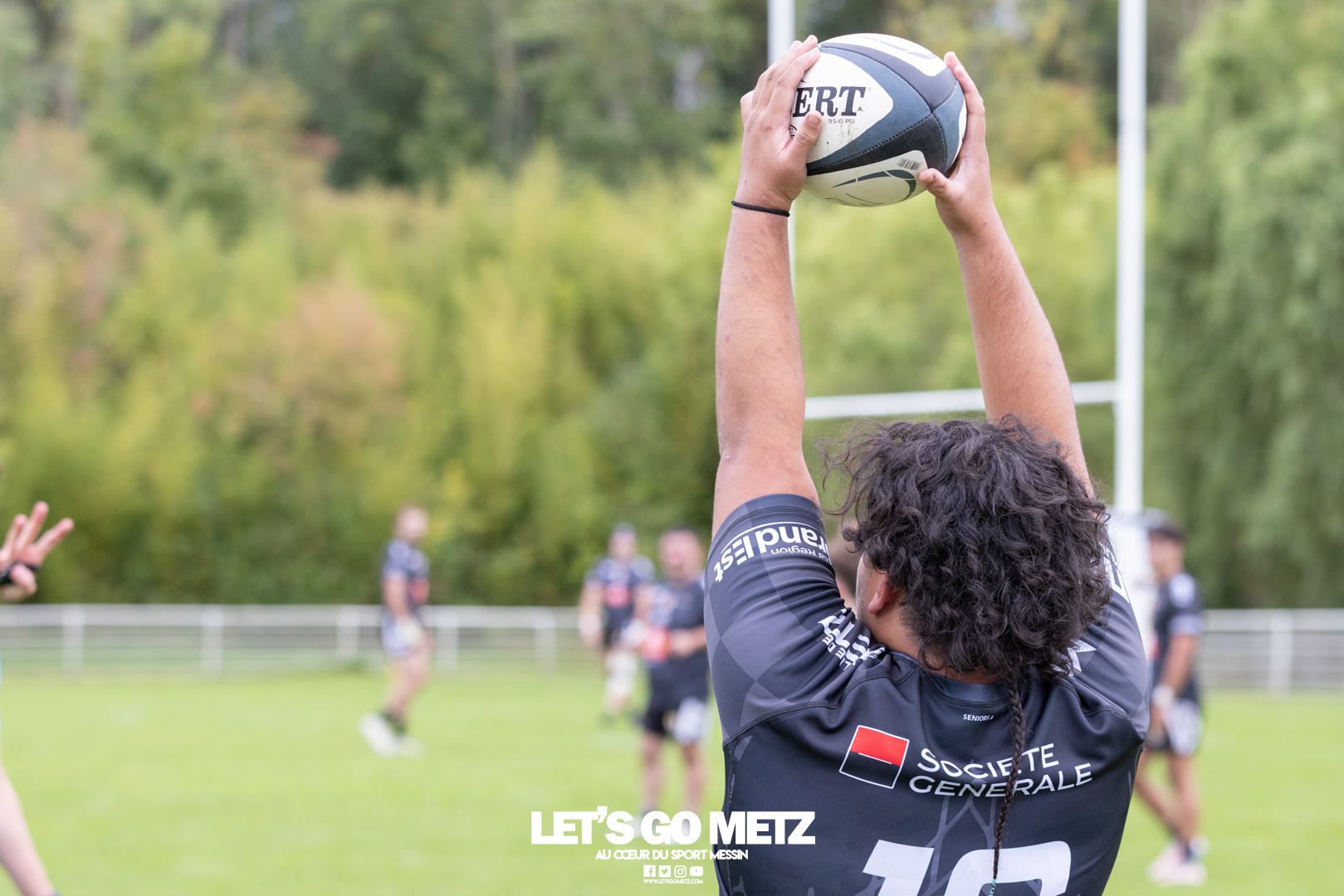 94 Le RC Metz Moselle a signé un joli succès ce dimanche 2 novembre dans le derby contre Nancy Seichamps en Fédérale 3. Les matchs entre le RC Metz Moselle et Nancy Seichamps ont toujours une saveur particulière. Si nous sommes loin de la rivalité que les deux villes peuvent connaître dans le football, l’enjeu reste réel à l’échelle du rugby lorrain, où bon nombre de joueurs des deux clubs se connaissent en dehors des terrains. Le rendez-vous de ce dimanche 2 novembre, pour le compte de la 6e journée de Fédérale 3, n’a pas échappé à la règle.Après une réussite pour chacun des deux buteurs, Ait El Kaid lançait les hostilités avec un essai inscrit rapidement dans la partie (10-3, 6′). Ce début de match serré laissait place à quelques minutes d’effroi avec la sortie sur blessure du Nancéien Dylan Hermann (25′), évacué par les pompiers, qui a nécessité une longue interruption de la rencontre. 24 points au pied pour Sanchez Le jeu reprenait et Gérard Sanchez continuait sa moisson avec deux nouvelles pénalités, mais les visiteurs profitaient d’une séquence de dix minutes en supériorité numérique pour réduire l’écart avant de regagner les vestiaires (19-13, 40′). En dépit de nombreux changements nancéiens à la pause, Gianoli donnait de l’air au RC Metz avec un essai dès les premières minutes de la seconde mi-temps (26-13, 46′).Nancy Seichamps s’accrochait grâce à un essai de pénalité mais Strentz et Ait El Kaid enfonçaient le clou (41-20, 67′). Suffisant pour permettre aux Messins de l’emporter, malgré des essais de Speletz et Mole en fin de match pour l’honneur. Le RC Metz Moselle pointe désormais à la 8e place de sa poule de Fédérale 3. RC Metz 44-32 Nancy Seichamps Mi-temps : 19-13. Essais pour le RC Metz : Ait El Kaid (6′, 67′), Gianoli (46′), Strentz (59′) ; pour Nancy Seichamps : Hevin (40′), Essai de pénalité (55′), Speletz (71′), Mole (80′). Transformations pour le RC Metz : Sanchez (6′, 46′, 67′) ; pour Nancy Seichamps : Simard (40′, 80′). Pénalités pour le RC Metz : Sanchez (3′, 22′, 31′, 38′, 58′, 78′) ; pour Nancy Seichamps : Simard (1′, 13′). Crédit photo : Matthieu Henkinet / Let’s Go Metz (archive)