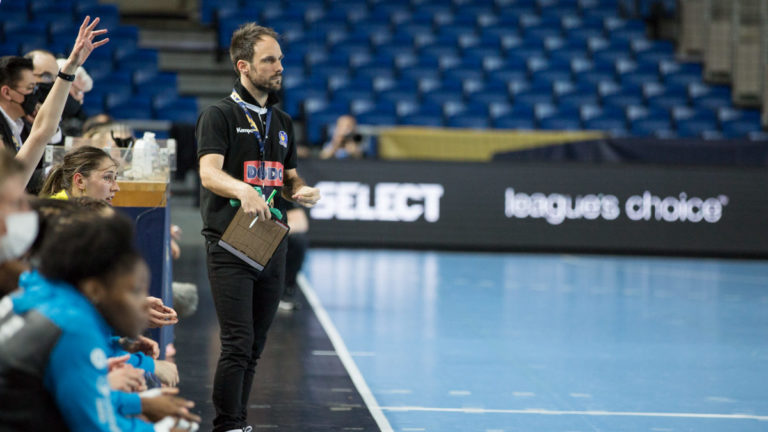 367 Après son revers en 1/4 de finale aller sur le parquet de Brest, Metz Handball se devait de redresser la tête à domicile afin d’espérer remonter un déficit de 10 buts, qui paraissait insurmontable au début de la partie. Malgré une réaction d’orgueil évidente, les Dragonnes sortent de la Ligue des Champions au terme d’un match nul 26-26. Privées de trois joueuses importantes, les brestoises se déplaçaient aux Arènes de Metz avec comme objectif d’imiter leur adversaire du jour et atteindre le premier final four de Ligue des Champions de leur histoire. Côté messin, même si l’espoir était mince, le rêve était permis étant donné les renversements de situation improbables que les Dragonnes nous ont déjà offert par le passé. Les messines tentaient déjà le tout pour le tout en début de partie, faisant sortir leur gardienne Dinah Eckerle titulaire dans les cages messines, afin d’attaquer à 7. Un choix infructueux puisque les deux premiers buts encaissés par les Dragonnes étaient dans une cage vide. Heureusement pour Metz Handball, Camila Micijevic assurait en attaque. (3-3, 5°)Les messines prenaient alors un petit ascendant que Marie-Hélène Sajka pouvait amplifier. Mais l’arrière droite messine envoya son jet de 7 mètres en plein dans le visage de Sandra Toft. Carton rouge sorti par les arbitres alors que le geste de la messine semblait bien involontaire. Brest profitait de la supériorité numérique pour reprendre la tête. (4-5, 9°)Les Dragonnes étaient comme anesthésiées par ce fait de jeu. Malgré un arrêt spectaculaire d’Eckerle en contre-attaque, Metz subissait les assauts des Rebelles, au-dessus du lot sur cette double confrontation. (7-11, 19°)Contre mauvaise fortune bon cœur, Orlane Kanor et Méline Nocandy nous régalaient tout de même d’un superbe kung-fu. L’envie était là, malgré tout. Mais Jaukovic et Foppa inscrivaient deux nouveaux buts de loin, punissant l’absence de gardienne. (12-14, 26°)Les Dragonnes rentraient finalement aux vestiaires avec un retard de trois buts.Mi-temps : Metz 14-17 Brest. Après ce premier acte compliqué, l’enjeu pour Metz Handball dans cette deuxième mi-temps était de relever la tête et d’aller chercher la victoire sur ce match retour, pour l’honneur. La remontée était idéalement lancée par Hatadou Sako et la toujours audacieuse Camila Micijevic, meilleure buteuse des Dragonnes sur la partie. (18-19, 41°)Après de longues minutes de lutte acharnée, les Dragonnes égalisaient enfin grâce à Manon Houette, qui plantait deux buts coup sur coup, l’un sur jet de 7 mètres, l’autre en contre-attaque. Une fin de match alléchante se profilait aux Arènes. (23-23, 51°)Pour la première fois depuis les premiers instants de la rencontre (2-1, 2°), les Dragonnes prenaient même les devants grâce à un lob tout en finesse d’Ailly Luciano. Avance validée par un nouvel arrêt d’Hatadou Sako sur jet de 7 mètres, puis confirmée par Méline Nocandy. (25-23, 54°)Les brestoises n’abdiquaient cependant pas, se battant jusqu’au bout, bien que leur qualification était déjà acquise. Les Rebelles égalisaient alors à deux minutes de la fin, pendant que les Dragonnes continuaient de buter sur la défense et les montants adverses. (26-26, 58°)Comme un symbole, après un bon stop défensif, Metz Handball se tirait une nouvelle balle dans le pied avec une perte de balle sur la contre-attaque qui aurait permis de l’emporter. Il restait alors une dernière possession de 15 secondes aux brestoises. Hatadou Sako préservait tout de même le match nul sur un dernier arrêt, sauvant d’une certaine manière l’honneur des Dragonnes.Score final : Metz 26-26 Brest Il n’y aura donc pas de deuxième qualification au Final 4 de la Ligue des Champions pour Metz Handball, nettement dominé par un Brest Bretagne Handball supérieur sur cette double confrontation. Les Dragonnes ont désormais les yeux rivés sur les playoffs de Ligue Butagaz Energie et sur la Coupe de France, où elles croiseront encore la route des Bretonnes. Statistiques de la rencontre Metz Handball :Sako (10 arrêts / 25 tirs), Eckerle (4/15)Micijevic (7 buts / 7 tirs), Nocandy (4/7), Houette (4/5), N’Gouan (3/3), Stanko (2/5), Burgaard (2/9), Luciano (2/2), Bont (1/3), Perederiy (1/1), O.Kanor (0/1), L.Kanor (0/1), Sajka (0/1)Brest Bretagne Handball :Toft (9 arrêts / 35 tirs), Quiniou (2/2)Foppa (6 buts / 7 tirs), Jaukovic (5/8), Gros (4/9), Lassource (4/6), Pop-Lazic (3/4), Gullden (2/4), Toublanc (1/3), Fofana (1/3), Mauny (0/1), Tissier (0/2) Crédit photo : Matthieu Henkinet