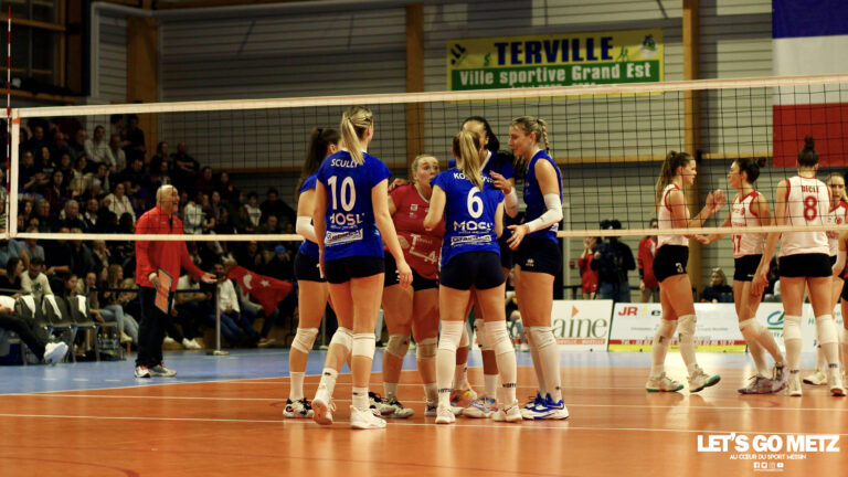 582 Après leur revers au match aller, le TFOC s’est incliné, une nouvelle fois, sur le terrain des favorites de la compétition, le THY Istanbul. Une défaite 3 sets à 0 synonyme d’élimination pour le club mosellan, qui voit son aventure européenne se terminer en 8ème de finale de la CEV Cup. La Coupe d’Europe s’arrête à Istanbul pour le TFOC. Pour sa première participation en CEV Cup, le club mosellan a buté en 8ème de finale face à l’équipe favorite de la compétition, le THY Istanbul. Le miracle n’a pas eu lieu. Les Bleues se sont logiquement inclinées 3 sets à 0. Dès les premiers points, la formation turque s’est taillée en patron (9-3). Romain Pitou a décidé de titulariser d’entrée Alohilani Robins-Hardy à la passe. Quant à l’entraîneur italien, Marcello Abbondanza, il a reconduit la même équipe qu’au match aller pour imprimer le rythme. L’attaque de l’Américaine, Madison Rishel, permettait à sa formation de prendre 10 points d’avance (17-7). A l’image du premier et du troisième set de la semaine dernière, le THY Istanbul était impérial. Emily Maglio se chargeait de conclure facilement la première manche (25-14). Un TFOC accrocheur En début de second set, les Bleues restaient au contact (8-8). Le signe du dernier espoir pour la formation tervillo-florangeoise. Les coéquipières de Greta Kiss encaissaient la puissance adverse pour revenir à seulement un point (16-15). Dans leur salle, les Stambouliotes se détachaient peu à peu au score, sous les services de Naz Aydemir Akyol et les frappes lourdes d’Hanna Orthmann (20-16). Madison Rishel, à la conclusion éliminait Terville Florange de la CEV Cup (25-20). Menées 2 sets à 0, les Bleues ne pouvaient plus rien espérer, si ce n’est sauver l’honneur.De ce fait, le TFOC ne s’est pas résigné (4-2). Qualifié pour les quarts de finale, Marcello Abbondanza décidait de faire tourner avec trois changements. Les joueuses de Romain Pitou en profitaient pour prendre les commandes du troisième set. Taylor Fricano, meilleure marqueuse de son équipe, offrait 6 points d’avance (14-8). Mais Pologne Ünver en avait décidé autrement. Le club mosellan lâchait du terrain (17-17). Les Bleues laissaient passer leur chance d’arracher une quatrième manche. Devant 150 spectateurs, le THY Istanbul s’imposait à domicile après 1h10 de jeu (25-22). Le derby lorrain pour rebondir Malgré l’élimination, Terville Florange a réussi son premier parcours européen. Romain Pitou et ses joueuses n’ont pas à rougir de leur prestation face à l’un des favoris de la compétition. Avec une quatrième place au championnat, le TFOC devra batailler pour accrocher une nouvelle participation à une Coupe d’Europe. Pour réussir cette prouesse, les coéquipières de Mariam Sidibé devront rebondir dans le bouillant derby lorrain, face à Vandoeuvre Nancy, samedi 21 janvier à 19h30. La parenthèse européenne se referme, mais le championnat continue. Thomas Guth Crédit photo : Valentin Lachaux/LGM