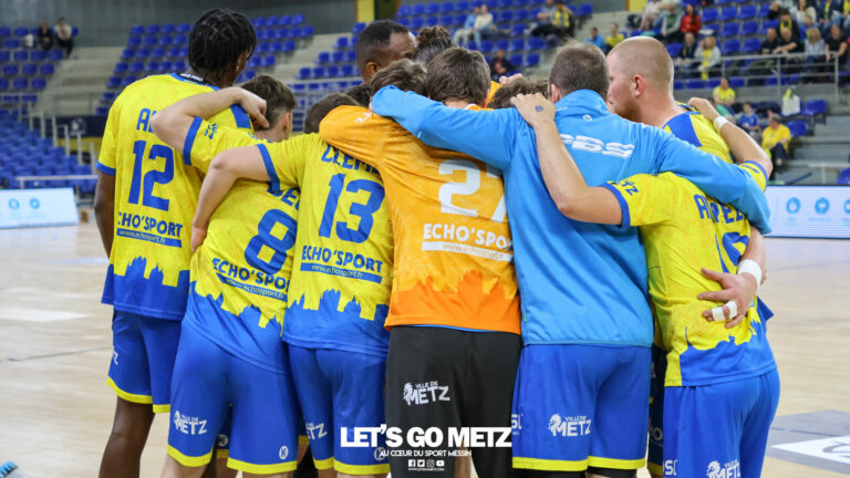 1,4K Les Cerbères de Metz Handball disputaient leur dernier match de la saison face à Gonfreville ce samedi 24 mai aux Arènes de Metz. Opposés à Gonfreville pour leur dernier match de la saison de Nationale 1 Masculine (N1M), les Cerbères de Metz Handball ont surtout été guidés par l’émotion. Programmés en cloture de rideau de la journée des 60 ans de Metz Handball, les hommes de David Motyka entraient sur le terrain avec l’envie de faire aussi bien que leurs compères de Nationale 1 Féminine et de Ligue Butagaz Energie, mais surtout avec la volonté d’honorer ceux qui mettraient fin à leur carrière à l’issue de cette dernière rencontre. À l’aube d’un véritable virage au sein de l’effectif, les messins ont frôlé de peu le rêve quelques jours plus tôt en finale de Coupe de France fédérale et l’entame de match laissait transparaitre l’usure mentale et physique.Les Cerbères manquaient de réalisme face au gardien adverse et laissaient filer quelques précieuses unités au scoring, permettant à Gonfreville de faire le break assez rapidement et confortablement. Quelques coups d’éclat redonnaient de l’élan aux locaux, comme à l’approche de la 20ème minute quand Lory Altis et Romain Rennie signaient deux réalisations en quelques secondes. Pénalisé par deux suspensions de deux minutes, le capitaine Guillaume Bettenfeld se voyait forcé de marcher sur des œufs défensivement mais contribuait malgré tout au retour à trois buts juste avant la mi-temps (12-15, mt). L’entame du second acte validait les bons efforts fournis avant la pause et les Cerbères recollaient à un but à la quarantième minute, avant d’égaliser par un coup de canon d’Altis (18-18, 42ème). Cette égalité peinait à être confirmée et les jaune et bleu continuaient à courir après le score. Les joueurs de Gonfreville, plus réalistes, refaisaient leur avance et à huit minutes de la fin la victoire était tout sauf acquise pour les locaux (21-23, 52ème). Plusieurs parades de gardien venaient éteindre progressivement les espoirs messins mais Xavier Blond, comme en Coupe de France scorait un lob sur sept mètres pour redonner de la fougue aux siens (22-24, 54ème). Cela ne suffisait finalement pas à relancer la machine. Score final de ce Metz Handball N1M – Gonfreville : 23 – 26 Doublés par leurs adversaires du jour, les Cerbères terminent donc la saison à la septième place de la Poule 3. Il faudra désormais passer par la phase « reconstruction » de l’effectif, avant d’aborder une nouvelle saison avec, espérons le, toujours autant d’envie. La galerie de la rencontre Les stats du match Metz HandballBalmy (5 parades), Jean (4 parades)Altis (8 buts sur 10 tirs), Andrezo (2/4), Beck (0/1), Belin (0/2), Bello (1/3), Blond (5/7), Clement (1/2), Miojevic (0/1), Rennie (1/4), Van Deik (2/3), Voltz. GonfrevillePelissier (15 parades)Adam, Bailleul, Boilay (1 but sur 1 tir), Coulibaly, Creteau (4/7), Doudinski (4/7), Euchi (0/1), Fouga (1/2), Langevin (7/9), Maujean (4/6), Pachoud, Phillip (4/7), Raby (1/1). Crédit photo : Stephan Weyrath / Let’s Go Metz
