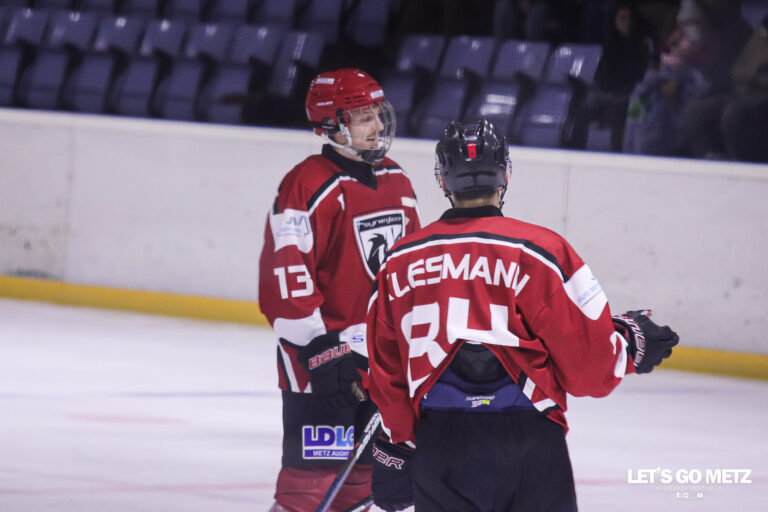 595 La bonne série du Metz Hockey Club s’arrête face aux Ducs de Dijon, dans un match au sommet de la Poule C en D3. Suite à cette défaite 6-2, les Graoullys pourraient voir leur place de leader bientôt menacée. La belle série s’arrête à 5 victoires consécutives pour le Metz Hockey Club. Une deuxième défaite à domicile cette saison, après avoir manqué son entrée face à Châlons-en-Champagne, les Messins s’inclinent face à Dijon. Une défaite qui fragilise la place de leader des grenats. En effet, les Ducs de Dijon reviennent à 3 points des Grenats, en ayant joué deux matchs de moins que les Lorrains. Un match où les Messins ont fait jeu et score égal avec les Dijonnais pendant les 30 premières minutes. Malgré une ouverture du score rapide des adversaires du soir, les grenats réagissaient dans la foulée via Yannick Hamri (1-1). Bryan Leheron égalisait à son tour dans le deuxième tiers-temps, après que les Bourguignons aient repris l’avantage en fin de première période (2-2). La suite de la rencontre fut à sens unique. Les Ducs déroulaient et trouvaient les filets à 4 reprises. Pour se reprendre les grenats se déplaceront à Strasbourg le 3 décembre, avant une longue pause hivernale. Le prochain match des Grenats à domicile se tiendra le 14 janvier 2023, face à Compiègne, seule équipe de la poule que les Messins n’ont pas encore rencontré. Metz Hockey Club 2 – 6 Ducs de Dijon Tiers-Temps : 1-2, 1-2, 0-2. Buts pour Metz : Hamri (04’31) Leheron (27’49) ; pour Dijon : Durin (02’24, 54’32), Geantet (17’40), Neuwirth (29’57, 35’42), Chabert (56’31). Statistiques Leheron 1 point (1but) Lapkov 1 point (1 assist) Hamri 1 point (1 but) Stablo 1 point (1 assist) Vorobyev 1 point (1 assist) Crédit photo : Lilian Bordron/LGM