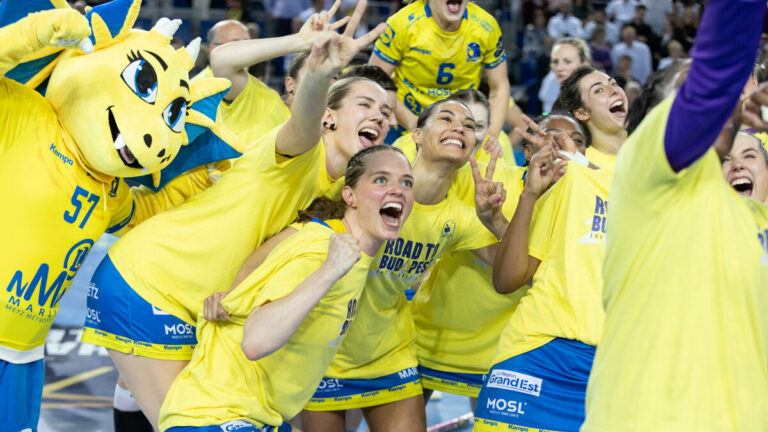 5,8K Les quarts de finale de Champions League ont rendu leur verdict, Metz Handball connaît désormais ses concurrentes pour le Final 4. Luxe d’être la première à se qualifier pour le Final 4, l’équipe de Metz Handball a pu observer confortablement les trois autres quarts de finale de Champions League. Les confettis n’étaient pas encore tous retirés du sol des Arènes que la Champions League continuait son chemin sur les autres terrains européens. À l’issue de ce week-end de matchs retour, Metz Handball connaît désormais l’identité de ses trois concurrents pour le Final 4, prévu les 1er et 2 juin 2024. Györ sort vainqueur du duel de géants Il y a parfois des quarts de finale dont le matchup fait penser aux plus grandes finales. Györ, finaliste de la compétition à neuf reprises et vainqueur cinq fois, a su écarter Vipers Kristiansand, vainqueur des trois dernières éditions. C’est en définitive le match aller, en terres norvégiennes, qui a fait la différence. L’ogre hongrois s’était imposé de sept buts (23-30) pour prendre une option sur la qualification. Au match retour, les Vipères ont affiché un visage bien différent en comptant jusqu’à quatre buts d’avance. Mais au coup de sifflet final, malgré la victoire norvégienne, l’écart au score s’avérait trop faible pour combler le retard du match aller (24-26). Bietigheim à l’aise dans le rôle d’outsider Passées par la phase de playoffs où elles sont venues à bout d’Ikast, les Allemandes de Bietigheim n’ont jamais perdu foi en leur jeu. Opposées à Odense pour ce quart de finale, les coéquipières de Xenia Smits avaient signé une belle performance lors du match aller en s’imposant de quatre buts (30-26). Pour le match retour, Odense a mis tous les ingrédients pour revenir à portée de qualification, usant notamment du jeu à sept en attaque. Dans une salle bouillante en faveur des oranges, Bietigheim gérait la pression et décrochait sa qualification sans vraiment trembler, malgré une défaite de deux buts.Il s’agit de la première qualification historique de Bietigheim pour le Final 4. Esbjerg, l’autre habituée du Final 4 Quatrième des deux dernières éditions, l’équipe d’Esbjerg s’est assurée une troisième qualification de rang au Final 4. Opposées aux finalistes de l’édition 2023, le FTC Budapest, les Danoises ont su négocier une victoire d’un petit but en terres hongroises lors du match aller (25-26) avant de lâcher les chevaux au match retour. Dominantes dès le coup d’envoi, les joueuses de Jesper Jensen ont compté jusqu’à sept buts d’avance en première période, avant de disputer un deuxième acte plus complexe mais non moins maîtrisé en terme de scoring (29-24). L’équipe danoise est la quatrième qualifiée. Il faudra désormais attendre le mardi 07 mai à 17h00 pour assister au tirage au sort du Final 4 et connaître les deux affrontements qui animeront la demi-finale, le 1er juin au MVM Dome de Budapest, en Hongrie. Crédit photo : Matthieu Henkinet