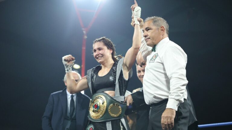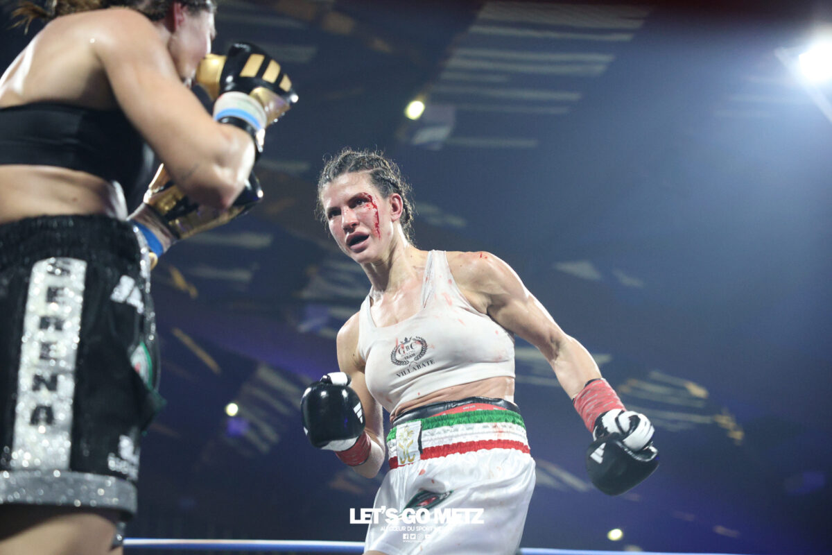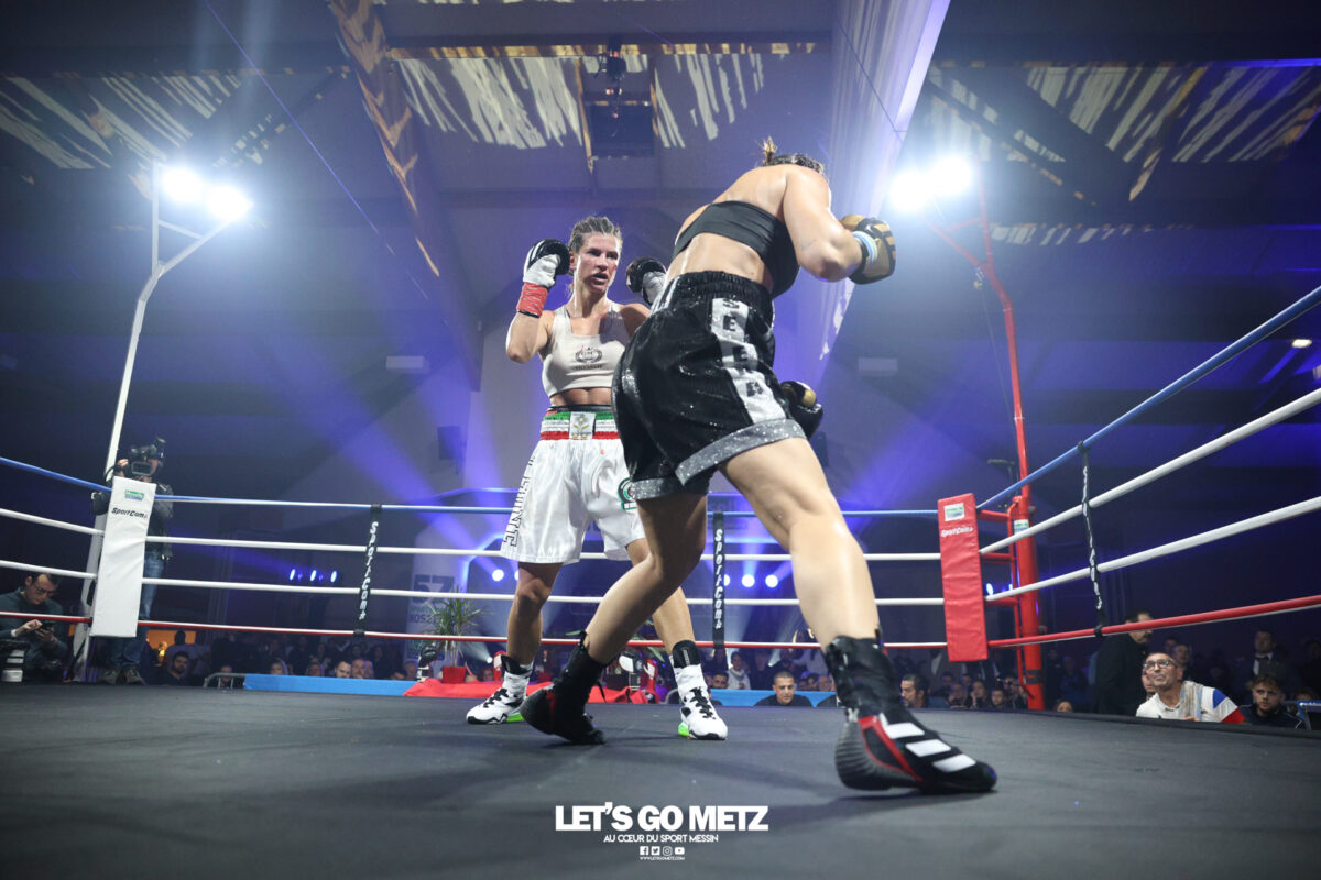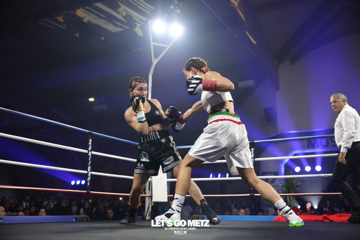 153 La boxeuse Flora Pili a remporté la ceinture mondiale IBO face à la Serbe Jelena Janicijevic ce vendredi soir à l’Agora de Saint-Avold. Il faut en faire l’expérience pour le comprendre pleinement. Flora Pili est une sportive à part. Ce vendredi à près de minuit elle était la dernière à descendre du ring de l’Agora à Saint-Avold après avoir pris inlassablement des centaines de photos avec ses proches, ses amis, supporters et parfois mêmes inconnus, ceinture de championne du monde IBO sur l’épaule. Aucune distinction, l’échange débute toujours de la même manière : « alors, tu as kiffé ? ». Ici, le « tu » est très important et le « je » vient beaucoup plus tard dans la conversation, même après avoir livré une bataille de dix rounds face à une Serbe particulièrement coriace. Une heure et demi plus tôt, la Naborienne faisait son entrée dans « sa » salle, celle qui l’a vue devenir championne de France en 2022, défendre une ceinture EBU en 2023 et gagner, puis défendre, une ceinture intercontinentale WBO en 2024 et 2025. Cachée encore quelques instants derrière le rideau des coulisses, une vidéo passe dans l’écran géant, Flora s’adresse là aussi à son public. Celui qui l’a toujours soutenue et portée jusqu’aux sommets. Il n’en fallait pas plus pour que la salle exulte et l’accueille de la plus belle des manières. Quelques mètres séparent la boxeuse du ring, elle les arpente alors d’un pas calme à l’image de la sobriété de sa tenue de combat : noire, simplement ornée de son nom et de celui de sa fille Serena. Une sobriété qui ne faisait que retarder le feu qui allait s’allumer sur le ring quelques instants plus tard. Jelena Janicijevic, l’adversaire du jour, n’est pas venue faire de figuration et ouvrait en effet les hostilités avec une énergie folle, forçant la locale à s’adapter. Véritable diesel, et entraînée comme telle, Flora Pili montait en intensité au fil des rounds, tout comme les encouragements du public, tandis que son adversaire perdait en constance, émoussée par les minutes de lutte mais aussi par les coups reçus. Adepte de l’esquive et du contre, la Française plaçait savamment ses offensives pour créer des dégâts de manière opportune jusqu’à la cloche finale. Si la décision des juges s’avérait plus serrée qu’à l’accoutumée, c’est bien une Mosellane qui remportait son premier sacre mondial à l’issue des débats. « Un rêve de petite fille » pour celle qui prenait le micro au centre du carré de combat pour remercier ceux qui l’ont guidée jusque là, marquant avec émotion le nom de son grand père, qui a initié la belle histoire familiale. Une nouvelle ceinture mondiale en ligne de mire Dans les coursives de l’Agora, une fois les grandes lumières éteintes et alors que la ceinture mondiale IBO passait de mains en mains comme pour partager la victoire avec tous, Flora Pili avouait volontiers ne pas encore réaliser pleinement sa réussite du jour. Pourtant au détour des conversations un prochain objectif se dégageait déjà : la conquête du titre IBF, une fédération encore plus prestigieuse. Katie Taylor en est la championne en titre mais a choisi de mettre sa carrière entre parenthèse et semble désormais plus intéressée par les combats lucratifs face à des célébrités que par la conquête du noble art, ce qui laisse la ceinture vacante. Encore une histoire de « je » et de « tu » probablement.Une chose est sure, peu importent les adversaires ou les échéances, le clan Pili, et Pietro le papa / coach en première ligne, ne va pas se reposer de si tôt. De l’aveu de Flora, 2026 pourrait être l’année la plus importante de sa carrière… À Saint-Avold où ailleurs, le peuple de la boxe mosellane sera derrière elle. La galerie du combat Crédit photo : Nicolas Martino / Let’s Go Metz