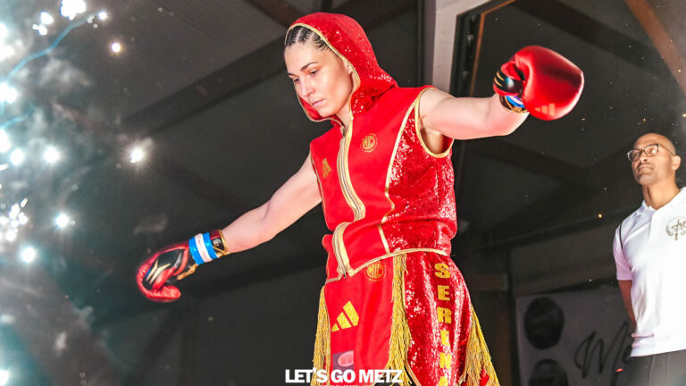 770 Flora Pili disputait vendredi la défense de son titre WBO et a pu compter sur l’engouement du public de Saint-Avold pour remporter le combat avant la limite. Il y a quelques jours, Flora Pili s’est imposée face à Ana Maria Lozano pour conserver son titre intercontinental WBO. En s’imposant avant la limite, la boxeuse naborienne a marqué une étape importante dans sa conquête d’un titre mondial en 2025. A l’issue du combat elle a livré ses réactions tout en dévoilant les contours de ce que seront les prochains mois pour elle. Quels sont les premiers sentiments après cette victoire ?Je suis contente, très contente, le travail porte ses fruits et la puissance est là avec un KO au dernier round. Je pense que le combat aurait même pu être arrêté avant mais c’est la règle en professionnel, il faut vraiment qu’elle soit au sol ou pose un genou par terre pour que le combat soit stoppé.Mais je suis de toute façon satisfaite du combat, on monte en intensité, on monte en puissance et on touche au très haut niveau. C’est un combat maîtrisé de A à Z en définitive…Je pense que je prends tous les rounds en faisait parler technique et maîtrise. Je n’ai pas pris trop de coups. Pour moi c’est une soirée parfaite, à la maison, devant mon public. J’ai senti cet engouement derrière moi pendant le combat et ça me touche vraiment. En face il y avait tout de même une adversaire qui a disputé une quarantaine de combats, très chevronnée. Terminer une combattante comme elle, fait forcément passer un cap.Ca me fait peut être franchir un cap mais ça me fait surtout prendre encore plus confiance en moi. C’est face à des adversaires comme elle qu’on peut vraiment se jauger et confirmer les paliers que l’on a franchis ces dernières années. Mais ce n’est pas fini, on va monter, travailler encore plus dur, toujours, pour attendre les objectifs que l’on s’est fixé. Avant de monter sur le ring ce vendredi on avait pu évoquer une préparation physique d’un cran au dessus de ce qui avait été fait jusqu’alors et ça a fait une grosse différence. A la fin du combat on a presque le sentiment qu’on peut amener une deuxième adversaire.Oui, c’est ça ! (rire). C’était l’objectif de cette préparation. On voulait travailler sur l’intensité de tous les rounds. Auparavant j’en tenais peut être sept ou huit à fond mais maintenant je peux dire que je tiens les dix rounds à très haute intensité sans avoir le moindre coup de mou. Que réserve la suite ? La voie vers une ceinture mondiale a été évoquée à plusieurs reprises, quelles sont les étapes à franchir désormais ?Honnêtement pour le moment je ne sais pas, mon promoteur va travailler dessus. Je pense qu’il me faudra encore un combat de préparation d’ici juin ou juillet pour pouvoir disputer un championnat du monde en fin d’année. Je l’espère de tout cœur ! Crédit photo : Mikael Frank / Let’s Go Metz