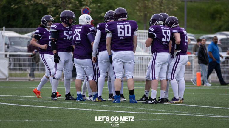 1,4K Découvrez le calendrier des Artilleurs de Metz pour la saison 2024 de football américain en Régionale 1 (Grand Est). Les Artilleurs de Metz connaissent leur calendrier pour la saison 2024. L’équipe de football américain de l’agglomération messine évoluera dans une poule unique de Régionale 1, composée de cinq équipes du Grand Est. La montée en Division 3, où évoluaient les Artilleurs la saison dernière, sera régie par une finale entre le premier et le deuxième à la fin de la saison régulière. Le calendrier des Artilleurs 13/01 : Artilleurs de Metz – Bisons de Besançon 10/02 : Artilleurs de Metz – Pygargues de Troyes 25/02 : Entente Wolfpack/Archanges de Haguenau/Molsheim- Artilleurs de Metz 09/03 : Artilleurs de Metz – Entente Wildcats/Wildboards de Reims/Charleville-Mézières24/03 : Bisons de Besançon – Artilleurs de Metz 21/04 : Pygargues de Troyes – Artilleurs de Metz 04/05 : Artilleurs de Metz – Entente Wolfpack/Archanges de Haguenau/Molsheim 26/05 : Entente Wildcats/Wildboards de Reims/Charleville-Mézières – Artilleurs de Metz