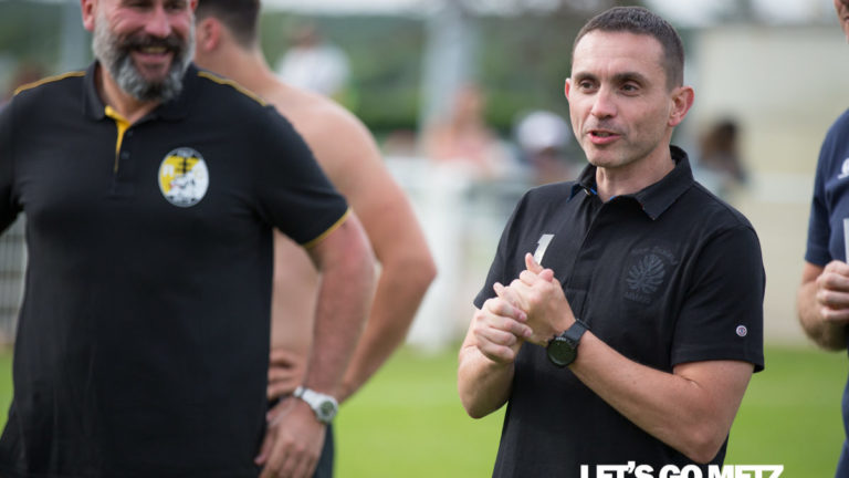 615 De retour au sein du staff du RC Metz cette saison après une courte absence, Geraud Gas a accepté de répondre à nos questions après la défaite de son équipe face au Rugby Tango Chalonnais. Que retenir du déroulement de cette rencontre face au Rugby Tango Chalonnais ?On voit la différence entre une équipe qui joue ensemble depuis quelques années, où il n’y a pas eu trop de turnover et l’équipe de Metz qui est très jeune, avec des joueurs qui viennent de monter. Ce sont des matchs sur lesquels on apprend le métier. On voit que parfois on surjoue plutôt que de rester dans le cadre qui avait été posé, notamment à la mi-temps.A la fin on perd un peu pied parce qu’on devrait aller en touche et prendre des points mais on ne les prend pas et le score final s’en ressent. A ce propos, est ce que ce n’était pas une erreur que de jouer le jeu Chalonnais en prenant les trois points sur pénalité plutôt que d’aller chercher un essai ?Oui, il y a certainement des moments où on doit être plus sereins sur des phases de jeu en prenant les points qu’il y a à prendre quand il le faut, mais aussi en allant jouer quand on est dans la zone de marque. C’est primordial de prendre des points contre des équipes comme ça. Pour nous en Fédérale 2, chaque point a de la valeur. « Ce sont des matchs sur lesquels on apprend le métier » On en avait vu les prémices la semaine passée, il y a beaucoup de problèmes de discipline et le jeu s’en trouve haché, est ce que c’est le chantier prioritaire actuellement à Metz ?Il faut qu’on soit beaucoup plus disciplinés, c’est certain. Je pense que dans cette poule les équipes entre la 4ème et la 8ème place vont développer le même jeu et c’est forcément celle qui fera le plus de fautes qui passera à la trappe. Il faut qu’on bosse, qu’on vienne avec de la volonté aux entraînements pour travailler et faire le moins de fautes possibles. Notre jeu n’en sera que plus propre. La semaine prochaine il y aura le premier déplacement de la saison, du côté de Le Creusot, à quoi s’attendre lors de ce match ?Ca va être une équipe très solide, Le Creusot a annoncé ses intentions de montée. On va bien travailler cette semaine pour préparer ce match et essayer de faire quelque chose. On a rien à perdre et tout à gagner. Il est toujours possible d’accrocher quelqu’un à l’extérieur et si on peut le faire Dimanche et bien on le fera volontiers, même contre une équipe comme celle ci. Crédit photo : Matthieu Henkinet