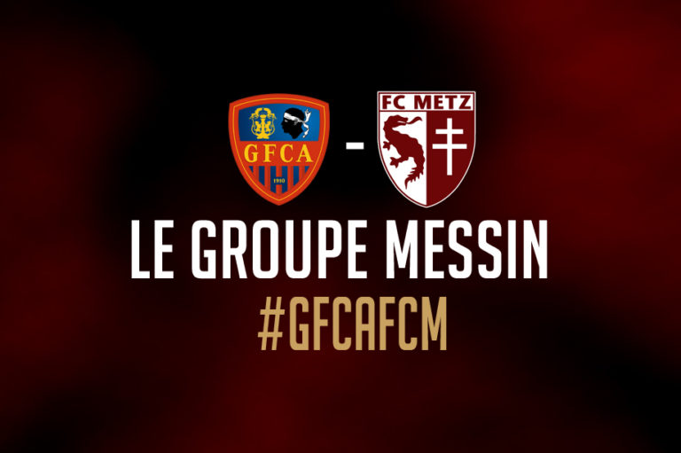 289 Ce vendredi à 20H00, les grenats se déplacent à Ajaccio pour la 33e journée de Ligue 2 . Découvrez le groupe convoqué par Vincent Hognon. Gardiens Delecroix, Oukidja Défenseurs Boye, Balliu, Rivierez, Jans, Sunzu, Delaine Milieux Fofana, Cohade, Maïga, Gakpa, Boulaya, Angban, Jallow, Nguette Attaquants Niane, Rivière, Diallo GFC Ajaccio – FC Metz Vendredi 19 Avril 2019 En direct sur beIN SPORTS MAX 2 ou 3
