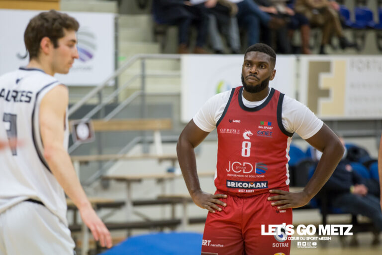 384 Les Metz Canonniers vont devoir se passer de leur capitaine Henok Affa pendant quelques matchs. L’ailier est en effet touché au mollet et devrait manquer 5 à 6 semaines de compétition. Sorti sur blessure samedi lors du 1/8ème de finale du Trophée Coupe de France à Loon-Plage, Henok Affa est fixé sur son sort. Le capitaine messin manquera 5 à 6 semaines de compétition. L’ailier est en effet touché au mollet. Un coup dur pour la formation grenat qui devra se passer d’une arme sur les postes extérieurs. Auteur de 6,3 points de moyenne cette saison, Henok Affa n’affole pas les statistiques. Il n’a jamais d’ailleurs été un joueur de stats. Mais sa présence défensive et son altruisme sont des atouts indéniables pour les Metz Canonniers. Utilisé en sortie banc par Stéphane Frentzel, il apporte son solide physique.Il peut en effet s’opposer à des intérieurs adverses en défense, bien qu’il ne mesure « que » 1m89. Un plus indéniable dans une équipe qui ne tourne qu’avec 3 intérieurs de métier (Florimont, Pietrus, Calhoun), plus Idris Macouangou qui est souvent utilisé au poste 3. Un coup dur pour les Metz Canonniers qui auront donc qu’une rotation à huit joueurs pour les semaines à venir. L’addition pourrait être même plus salée pour les Grenats. Sanctionné de plusieurs fautes techniques – dont certaines dégainées de manière assez abusive – Florent Pietrus passera devant la commission de discipline de la FFBB le 10 mars. Espérons donc que les instances arborent une certaine clémence avec l’ancienne gloire de l’Equipe de France. Crédit photo : Matthieu Henkinet/LGM