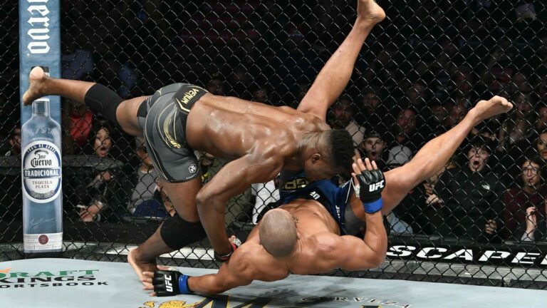 663 Si Let’s Go Metz n’a pas pour habitude de s’éloigner du territoire Mosellan, il y a parfois des évènements dont l’intérêt est suffisamment puissant pour nous inspirer un hors série. UFC 270 en fait partie et plus particulièrement son main event entre Francis Ngannou et Ciryl Gane. Le MMA n’est peut être pas le sport le plus populaire en France, mais l’hexagone sait fabriquer de grands champions. Alors que Paris attend toujours de pouvoir accueillir son premier évènement d’envergure internationale, deux combattants issus de la formation Française s’affrontaient ce Samedi soir pour la ceinture de champion du monde poids lourd de l’UFC. La plus haute distinction possible dans ce sport. Le face à face D’un côté Francis Ngannou, surnommé le Predator et champion UFC en titre des poids lourds. Du haut de ses 1mètre93 pour 117kg, il cumulait avant la rencontre 16 victoires en 19 combats. Véritable machine à KO, ce Camerounais a gravi les échelons mondiaux à l’aide de sa force surhumaine. Formé au MMA Factory à Paris, il a rejoint les Etats Unis et Xtreme Couture en 2018 pour continuer sa progression après une brouille avec Fernand Lopez, son ancien coach. De l’autre côté, un actuel pensionnaire du MMA Factory et justement coaché par Fernand Lopez : Ciryl Gane, le « bon gamin ». Le Français cumulait 10 victoires en autant de combats de MMA avant cette rencontre. Du haut de ses 1m96 pour 112kg il est connu pour son calme et sa versatilité. Il a par ailleurs fait ses armes dans le Muay Thai, une discipline dans laquelle il dispose également d’un record parfait de 13 victoires. Après seulement trois années de compétition en arts martiaux mixtes, il devenait en Aout 2021 le champion intérimaire des poids lourd de l’UFC. Le combat Si durant les semaines qui ont précédé le combat le débat a beaucoup tourné autour du fait que Gane et Ngannou s’étaient déjà entrainés ensemble ainsi que d’une supposée arrogance liée à la brouille avec Fernand Lopez, les deux hommes se sont témoignés un certain respect lors des différences conférences de presse. Ils se promettaient malgré tout l’un et l’autre une véritable guerre une fois les portes de l’octogone fermées. Les premières minutes du combat voyaient les deux hommes se tester l’un et l’autre. Gane faisait rapidement varier son positionnement pour faire parler sa mobilité, tandis que Ngannou privilégiait une approche calme pour imposer une forme de contrôle sur les échanges et ne pas dépenser trop d’énergie.Dès le début du deuxième round, Ciryl Gane adoptait une posture particulière. De côté, garde baissée, pour placer plusieurs coups de pieds latéraux au corps et maitriser la distance. Suivaient quelques coups de poings mais les échanges restaient maitrisés et Ngannou se montrait particulièrement inactif. Peut être trop pour le public qui laissait entendre quelques sifflets de mécontentement.Le troisième round débutait sur les mêmes bases mais Ngannou se montrait plus actif et scorait un gros takedown après une minute. Le premier encaissé dans la carrière de Gane. Bien placé en side control, le Camerounais travaillait et semblait obtenir une position très favorable avant que Gane ne parvienne à revenir debout. Un nouveau takedown suivait et les deux hommes se retrouvaient rapidement à la lutte contre la cage. Gane plaçait un spinning elbow en sortie de garde. Après quelques échanges au centre de la cage, Ngannou plaçait un nouveau takedown. Le gong de la fin de round arrêtait alors les débats.Le quatrième round débutait de la même manière, jusqu’à un nouveau takedown de Ngannou pour asseoir sa domination grâce à la lutte sans pour autant scorer de coups significatifs ou d’occasions de soumission.Une domination suffisante pour que Fernand Lopez annonce à Ciryl Gane avant le dernier round qu’il s’apprêtait à perdre le combat s’il ne réagissait pas rapidement.Le Français se montrait donc beaucoup plus engageant dès la reprise avec quelques combinaisons aux poings et un takedown. Ngannou parvenait contre toute attente à retourner la situation en profitant d’une grosse erreur de Gane. Le Français tentait cependant deux clés de jambe sans pour autant parvenir à finir le travail et Ngannou se plaçait alors idéalement pour reprendre le contrôle et faire tourner le chronomètre. Usé, Gane ne parvenait pas à renverser la vapeur face à la lutte du Camerounais, jusqu’à la séparation finale. Après un combat loin d’être le spectacle explosif annoncé, Ngannou faisait valoir une excellente préparation et retenait sa ceinture de champion via décision unanime grâce à une lutte et un contrôle impeccable. STILL the baddest man on the planet!! 🌎🏆@francis_ngannou takes the decision over Ciryl Gane! #UFC270 pic.twitter.com/J7no2n6isK— UFC Canada (@UFC_CA) January 23, 2022 Les autres résultats de la carte principale Deivesen Figueiredo est redevenu champion Flyweight en battant Brandon Moreno par décision unanime après 5 rounds.Michel Pereira a battu André Fialho par décision unanime après 3 rounds.Said Nurmagomedov a battu Cody Stamann en 47 secondes par soumission (guillotine)Michael Morales a battu Trevin Giles par TKO après 4 minutes et 6 secondes. Pour aller plus loin : le MMA qu’est ce que c’est ? Ce sport, Mixed Martial Arts (arts martiaux mixtes), parfois appelé à mauvais escient « combat libre » ou « free fight » tire son nom de son essence même : une combinaison d’un ensemble d’arts martiaux aussi bien ancestraux que modernes, pratiqués debout comme au sol. Il a été proposé pour la première fois au grand public sous cet aspect lors de la tenue de l’UFC 1 en Novembre 1993, un événement souvent considéré comme l’embryon de ce qu’est le sport aujourd’hui et qui a vu s’affronter sous forme de tournoi des pratiquants de 8 arts martiaux différents 