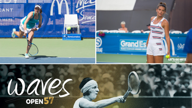 465 Alors que sa dixième édition touche bientôt à sa fin, ce Samedi 06 Juillet avaient lieu les deux demi finales de la cuvée 2019 du Waves Open 57. Myrtille Georges et Chloé Paquet, ont respectivement écarté Irina Ramialison et Manon Arcangioli pour se qualifier en finale. Les deux joueuses ont accepté de répondre à trois de nos questions avant de se retrouver une dernière fois sur le court central ce Dimanche à 15h00. Myrtille Georges Let’s Go Metz: Pour votre première entrée dans le tournoi, le contrat est plutôt rempli: une victoire contre Margot Yerolymos, le titre en double et à présent une qualification en finale. Pourquoi ne pas être venue à Moulins les années précédentes ? Myrtille Georges: En fait, ma programmation faisait que je jouais sur terre battue, après je sais qu’il y a beaucoup de filles qui viennent jouer ici et qui vont à Contrex derrière mais moi j’ai besoin de beaucoup plus de temps pour m’habituer aux surfaces donc à chaque fois j’hésitais même si je n’en entendais que du bien mais comme cette saison je ne passe pas par la terre battue et que je vais direct sur dur, je me suis dit que c’était l’occasion parfaite… Après, effectivement c’est un tournoi vraiment sympa que j’aurais peut être aimé connaitre plus tôt mais là c’était vraiment le bon moment pour moi. LGM: Irina Ramialison que vous affrontiez en demi finale vous avait battue en simple il y a quelques mois, est ce que ce match était une petite revanche ? MG: Oui, j’ai dû la battre une fois, une victoire sur six matchs je crois donc là on est à deux sur sept… Donc j’ai rarement gagné contre elle et j’étais vraiment concentrée, j’ai très bien commencé et j’ai essuyé une petite baisse de régime mais j’avais vraiment envie de bien faire et de me prouver que je pouvais la battre et que j’arrête de trop penser. LGM: Vous étiez la première qualifiée pour la finale, j’imagine que vous avez observé le match entre Chloé Paquet et Manon Arcangioli de très près… Doit on attendre des étincelles entre vous et Chloé Paquet sur le court demain après midi ? MG: Oui, j’ai vu le match. Je connais bien Chloé, je sais comment elle est, on joue ensemble aux matchs par équipe , on se voit toute l’année sur le circuit, on tape ensemble… Donc on se connaît c’est sûr, après elle a un gros service… Donc j’espère que cela va être une bonne finale, un bon combat et que chacune va donner le meilleur. On aura toutes les deux envie de le gagner donc j’espère que ça va être sympa pour tout le monde ! Chloé Paquet Let’s Go Metz: Vous retrouvez le Waves Open après votre titre en double l’an passé et une défaite en finale pour le simple, c’est un tournoi bien ancré dans votre agenda à présent ? Chloé Paquet: Oui, j’adore ce tournoi ! C’était ma première fois l’année dernière et tout de suite après la finale j’ai dit que j’allais revenir. C’est vraiment très agréable de jouer ici sur un beau central, tout est réuni pour venir jouer au tennis donc bien sûr je suis revenue cette année avec plaisir. LGM: Pour votre second match en simple dans le tournoi vous venez d’écarter Manon Arcangioli, une joueuse que vous connaissez bien et qui vous a donné du fil à retordre, pouvez vous nous parler de l’état d’esprit dans lequel vous étiez pour ce match ? CP: C’est vrai que de jouer Manon ce n’est pas évident, on se connaît depuis toujours et on est de la même année, je suis pas hyper fan de son jeu quand on est face à face. Je ne me sentais pas très bien dans ce match mais il fallait se battre pour gagner et c’est ce qui s’est passé. Parfois on se sent pas au top et faut faire avec, ce n’était pas mon meilleur match de la saison mais la victoire est là malgré tout. LGM: A présent vous vous dirigez vers la finale et allez affronter une autre joueuse que vous connaissez bien: Myrtille Georges. A quel type de finale doit on s’attendre ? CP: Je pense que ça va être une belle finale, Myrtille a un super jeu, elle joue bien sur cette surface donc ça va vraiment être intéressant pour moi. Il va falloir que j’élève mon niveau de jeu par rapport à aujourd’hui, c’est sûr, car sinon contre Myrtille ça ne va pas passer. Mais oui je la connais aussi, je connais ses forces et ses points faibles, j’espère que ça sera une belle finale pour le public et on va tout donner. Retrouvez notre fil rouge du Waves Open 57 à cette adresse et ne manquez aucune actualité du tournoi ! Propos recueillis par Matthieu Henkinet et retranscrits par Julien Buret Crédit photo: Matthieu Henkinet