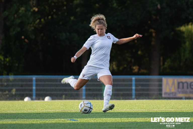 955 La jeune défenseure centrale du FC Metz, Clara Petitjean, nous a accordé une interview exclusive avant la réception du VGA Saint Maur dimanche prochain. Un discours empli d’humilité et de détermination. Entretien. Pur produit du centre de formation grenat, Clara Petitjean entame officiellement sa 3ème saison dans l’équipe première. Porter ce maillot avec cette Croix de Lorraine, c’est plus qu’une fierté pour elle : « J’ai réussi à monter progressivement toutes les étapes, tous les échelons, et arriver en équipe sénior c’est vraiment une finalité. C’est un tel honneur de représenter mon club formateur. Je suis messine. Porter ce maillot me donne encore plus envie de me déchirer tous les weekend pour la Croix de Lorraine. » Le football, une affaire de famille Le football pour Clara c’est avant tout une affaire de famille… La famille au cœur de la passion, et des débuts dans le football comme beaucoup de joueurs et de joueuses de sa génération : « Cela a commencé par mimétisme avec mon grand frère, je voulais toujours être en compétition avec lui. Il s’est mis au football et j’ai décidé que j’allais aussi m’y mettre, et que j’allais essayer de le battre. Cela a toujours été une petite compétition et c’est grâce à lui que j’ai mis le pied à l’étrier ! » Une passion pour le foot tout de suite acceptée par son entourage : « Cela s’est fait naturellement dans ma famille. Mon frère était déjà dedans, j’étais autour du terrain pour le supporter. Et quand j’ai commencé mes parents ont été très ouverts, d’ailleurs ils viennent à tous mes matchs, domicile comme extérieur. » Clara, 20 ans mais déjà une grande maturité pour celle qui n’était pas destinée à un poste défensif : « De base quand je suis montée en sénior et que Jessica Silva est arrivée j’étais milieu de terrain et au début de la saison dernière elle m’a dit que j’allais jouer défenseur central. On avait eu des blessures du coup je suis descendue d’un cran et finalement ça s’est très bien passé. C’est donc devenu officiel, je suis défenseur central ! C’est un poste à responsabilité. Je sais que je suis jeune, mais cela me permet justement de prendre plus vite de l’expérience. C’est un poste où je me plais bien ! » Une maturité acquise également en équipe de France U16 où elle avait été retenue pour un rassemblement en 2017 avec Orane Schmeler et Léa Munier. Une expérience enrichissante pour Clara qui reste focus avant tout sur le FC Metz : « Je me focalise seulement sur mes performances en club car le plus important c’est de jouer les premiers rôles avec Metz et si individuellement il y a des choses qui suivent on verra, mais ce n’est pas mon objectif principal. Je suis vraiment axée sur le club. » Une faim de victoire Après cette saison avortée par la crise sanitaire et de longs mois sans compétition, les messines affichent une envie communicative et une motivation décuplée par une préparation très longue : « On avait hâte de reprendre la compétition. Cela faisait vraiment longtemps qu’on avait pas joué. On a faim, on a envie de gagner. On a la rage, on ne se cache pas, on veut jouer les premiers rôles dans le groupe. Nous avons des ambitions et le but c’est vraiment de prendre le plus de points possibles. Une immense envie de jouer chaque match. On ressent un très bon état d’esprit dans le vestiaire. » Malgré la défaite cruelle au Havre où les messines, rapidement réduites à 10 ont fait mieux que résister, la dynamique reste plutôt bonne avec cette belle entame lors de la première journée et une victoire face à La Roche/Yon. Une dynamique qui ne doit rien au hasard. L’ambiance au sein du groupe est saine et joyeuse. « Le noyau dur de l’équipe était déjà là l’an passé, c’était beaucoup plus facile d’intégrer 5 nouvelles recrues que 13 comme l’an passé. La préparation a été très longue, on eu le temps de se connaître. On s’entraîne beaucoup. On se voit 8 à 9 fois par semaine. On a fait des sorties cohésion et on a réussi à souder un groupe. On sait que si l’on veut aller loin dans le championnat il faudra que tout le monde soit dans le même bateau. L’état d’esprit est bon. Si l’une d’entre nous est un peu en dessous un jour, on sait que tout le monde va se déchirer pour compenser. » « Jessica Silva ne néglige aucun compartiment du jeu. » Un groupe soudé et une coach proche de ses joueuses, à l’écoute et qui insiste autant sur la tactique que sur l’aspect athlétique : « Le coaching de Jessica Silva est très Nord-Américain. Elle axe les entraînements sur la tactique, mais également sur l’aspect physique. Jessica veut une équipe qui joue pendant 90mn. Elle ne néglige aucun compartiment du jeu. Son souhait c’est qu’on soit technique, athlétique, que le tempo du jeu ce soit nous qui l’imprimions. Elle est aussi proche de nous, à l’écoute. C’est vraiment agréable d’avoir une coach qui a toujours sa porte ouverte. » Le président René Franceschetti nous confiait récemment que la structure à Metz était bonne et complète pour le haut niveau. Que ce soit au niveau médical, sur la préparation physique, le coaching. Un sentiment partagé par Clara : « On a la chance à Metz d’avoir un staff médical avec un kiné, un docteur rien qu’à nous, on peut avoir des rendez-vous rapidement, faire des radios, des échographies. Cette année on a de nouveau un préparateur physique, c’est non négligeable, il connaît très bien son métier. Il y a un réel investissement sur la section féminine avec par exemple la rénovation des vestiaires. On a presque la plaine pour nous, on la partage juste avec la préformation des garçons. Les évolutions se font petit à petit, le projet à Metz monte crescendo. Sur le long terme on peut espérer avoir les mêmes conditions de travai