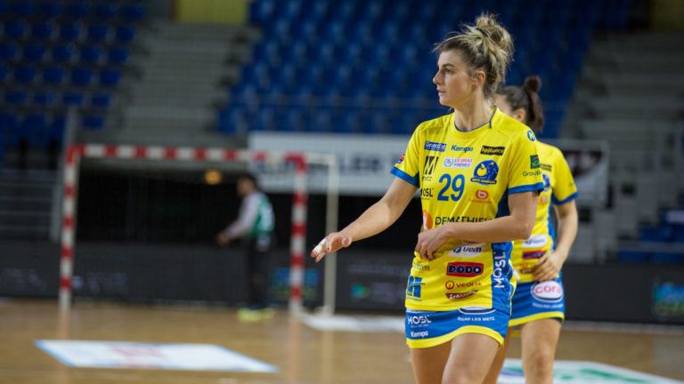 581 A la force du sourire et du naturel, la plus Bretonne des Messines s’est fait une place dans le cœur des supporters jaune et bleu cette saison. Placée depuis le début d’année dans une concurrence à trois avec Laura Kanor et Manon Houette sur l’aile gauche, elle a pris le soin de marquer le coup avec quelques offensives fulgurantes face à Bourg de Péage, l’équipe où elle évoluait la saison passée. A la sortie du terrain elle nous a accordé ses réactions sur la rencontre mais aussi ses impressions sur la saison en cours. C’est toujours un match particulier quand on connaît bien l’équipe qui se présente en face, quel a été le ressenti aujourd’hui ?Tout à fait, c’est l’équipe dans laquelle j’évoluais l’année dernière. Je connaissais pas mal de joueuses et certaines moins, mais on a fait un travail de vidéo comme pour chaque rencontre… Je pense qu’on a fait un bon match sérieux, avec de la rigueur et c’est ce qui nous permet de sortir de ce match avec un +9. C’est plutôt satisfaisant. A titre personnel il y a quatre buts inscrits, est ce qu’il y avait une envie de marquer le coup face à cette équipe en particulier ?Oui, bien sûr ! C’est toujours quelque chose que de jouer contre une équipe où on a déjà joué avant donc j’avais envie de faire un bon match et de scorer. Elles ont choisi de jouer une partie de la rencontre avec sept joueuses en attaque mais cette stratégie ne semble pas vous avoir surpris particulièrement. C’est quelque chose qui avait été anticipé ?Oui, un petit peu. L’année dernière la stratégie avait été de jouer à 7 contre 6 tout le match et on avait posé pas mal de problèmes à Metz donc aujourd’hui on s’y attendait un petit peu. Je trouve qu’on l’a bien géré défensivement et on a trouvé des solutions. Au final elles n’ont pas joué à 7 contre 6 tout le match et c’est certainement parce qu’on a bien géré la situation. Metz Handball amorce un passage relativement corsé du calendrier avec un double déplacement en Ligue des Champions et pas mal de temps sur la route. Comment est ce que l’équipe appréhende cette situation ?On s’est préparé, on savait que le mois de Janvier allait être corsé et qu’on allait enchaîner les matchs tous les trois jours et on avait quelques matchs à rattraper, notamment en ligue des champions. L’idée de ne pas revenir à Metz entre les deux nous fait un gain de temps considérable, on sera sur place pour la récupération alors que revenir pour repartir aurait été plus fatigant en définitive. On se prépare mentalement à ça et l’objectif c’est de revenir avec deux victoires, ça serait cool ! On imagine aussi que la victoire face à Rostov a aidé à faire le plein de confiance avant de partir disputer ces matchs…Oui, c’était important de réussir ce match. On avait deux grosses rencontres dans la foulée et le fait de gagner d’un but, d’avoir une bataille accrochée tout au long du match ça montre qu’on a eu du caractère et ça nous fait gagner des points précieux au niveau de la Ligue des Champions. Maintenant il faut continuer comme ça pour gagner le maximum de matchs et finir le plus haut possible dans le tableau et avoir le plus de récup en évitant des matchs qualificatifs… Au delà de ces grands tableaux si on regarde l’équipe de plus près le poste d’ailière gauche vit une saison particulière avec une concurrence à 3, comment est ce que ça se passe avec Laura Kanor et Manon Houette ?On savait qu’à partir de Janvier on serait trois. De mon point de vue il faut donner le maximum à chaque entraînement et voir ensuite comment les choses se passent, on a beaucoup de matchs et un gros rythme, dans ces conditions le fait d’être trois n’est pas de trop. C’est une situation qui fait que le temps de jeu est partagé mais globalement on a le sentiment de voir une Maud-Eva Copy épanouie à Metz, quel est le degré de satisfaction ?Je suis très contente d’être ici, je me sens bien, j’aime beaucoup la manière de fonctionner au niveau du handball, du physique… Je me sens bien dans le club et je suis contente de pouvoir vivre cette saison. J’espère qu’on va aller loin et qu’on va décrocher des titres cette année avec cette équipe, parce qu’on a vraiment un bon groupe. Propos recueillis et retransmis par nos soins. L’interview a été réalisée avant l’annonce du recrutement de Chloé Valentini.Crédit photo : Matthieu Henkinet