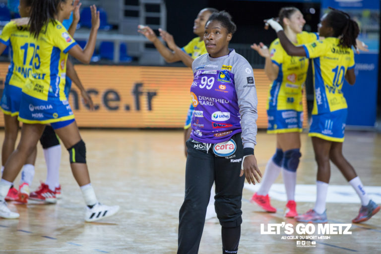 646 Les mains encore chaudes après son arrêt décisif, synonyme de victoire des Dragonnes face au Paris 92, Hatadou Sako s’est livrée à notre micro sur cette première rencontre à huis clos et son état d’esprit vis à vis de ce qu’elle vit au Metz Handball. Pour commencer, l’évidence, qu’est ce que cela fait de se retrouver dans une salle vide de public pour disputer un match de championnat comme celui ci ?C’est vrai que quand on joue à Metz Handball on a l’habitude d’avoir énormément de supporters. Ils nous apportent énormément et quand on joue dans une salle vide comme ce soir il faut aller chercher les ressources qu’ils nous apportent habituellement. On va devoir s’y faire parce que la situation sanitaire le veut mais c’est vrai que notre public nous manque énormément mais on va essayer d’aller chercher au fond de nous ce qu’il faut pour leur donner à travers leurs télés le plus beau spectacle qui soit. Alors ce soir les joueuses de Paris venaient avec des intentions aux Arènes mais elles repartent avec une défaite sur le fil, quelle a été la physionomie de cette rencontre ?Oui, on savait que Paris allait arriver avec de grosses ambitions, le plein de rage et d’engagement et c’est ce qui s’est passé. On a réussi à garder notre calme, on ne s’est pas perdu dans ce que l’on avait à faire. A certains moments on a moins bien joué, à d’autres on a très bien joué… On est une équipe qui se construit et ça passe par là, des bons moments et des mauvais moments mais avec cette capacité que l’on a à garder une dynamique ou une moyenne assez conséquente et assez bonne. Il y a aussi cette fin de rencontre où Ailly Luciano marque le but que l’on peut qualifier « de la victoire », mais sans l’arrêt qui suit le résultat ne peut pas exister. Comment est ce que l’on se sent après ce genre de stop salvateur ?Le match est long, on dit qu’il commence dès la première seconde et il se joue jusqu’à la dernière. Si ce tir là était rentré il aurait compté. Dans l’absolu c’est le but d’Ailly qui nous donne la victoire, après ça les filles se sont très très bien repliées et tout cela c’est le dénouement du match et à travers ça on a démontré une part de notre caractère : on rate, on y arrive pas forcément à certains moments mais on ne lâche pas et il faut y aller jusqu’au bout. Un match de handball c’est soixante minutes et on l’a vu aujourd’hui avec le but d’Ailly à quelques secondes de la fin, un dernier tir et l’arrêt que je fais. Je suis très contente, malgré les hauts et les bas, de cette victoire. On peut dire sans trembler qu’Hatadou Sako est une gardienne expressive. On voit beaucoup d’échanges avec les joueuses de champ, est ce que l’on peut dire que c’est la clé de la réussite ?Moi ça m’aide énormément et je m’appuie beaucoup dessus, j’ai besoin de générer énormément d’énergie, j’ai besoin de communiquer parceque ça m’entraine dans une dynamique. Moi, je suis avec la défense, la défense c’est moi et je suis la défense. Je suis toujours dans ce partage avec les filles, la communication, ce partage d’énergie pour générer le plus de bonnes choses possibles en défense. C’est une part de mon caractère ! (rire) Il y a eu plus de mouvements qu’attendu chez les gardiennes cette saison, avec la malheureuse blessure d’Ivana Kapitanovic, le fait que Mélanie Halter soit venue en renfort et aujourd’hui le recrutement de Dinah Eckerle. Comment est ce que l’on vit tout cela de l’intérieur ?Il faut savoir s’adapter à tout ce qui peut se passer, à tous les imprévus. Je suis venue à Metz pour découvrir. Découvrir au niveau du handball, ce que c’est que d’être dans le top niveau avec une infrastructure aussi grande que celle ci et cela passe aussi par là avec des moments durs qu’il faut vivre. On est très très tristes de la blessure d’Ivana, bien sûr. Metz a fait le travail pour pouvoir amener une gardienne de qualité en remplacement et on va apprendre à se connaître, on va partager de bonnes choses et on va tous se mettre dans le même sac pour partager de bonnes choses toutes ensemble et j’espère que ça va le faire. Dinah Eckerle est une très très bonne gardienne et j’espère qu’on va pouvoir être le plus complémentaires possible. Propos retranscrits par nos soins.Crédit photo : Matthieu Henkinet
