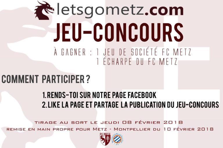 296 A gagner : 1 jeu de société FC Metz et une écharpe du club. Pour plus d’informations, visitez notre page Facebook.
