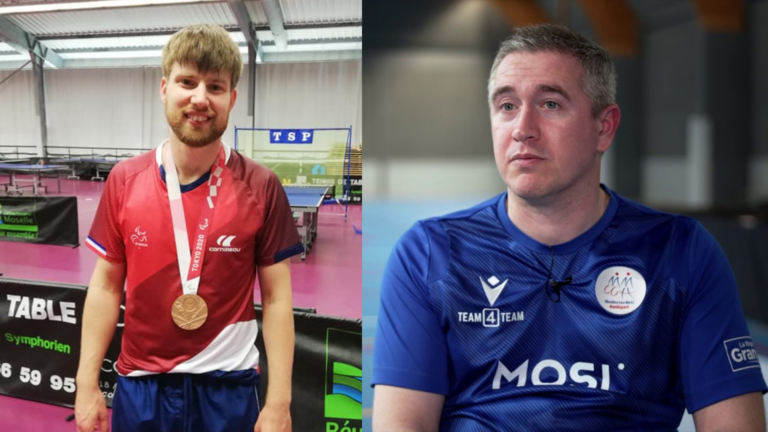 1,2K Pas de médaille pour la Moselle dans les différentes épreuves de tennis de table des Jeux Paralympiques de Paris 2024. Lucas Créange (classe 11) et Sylvain Noël (classe 3) ont respectivement été éliminés en quart et et huitième de finale de leur catégorie en simple. Il était l’une des chances de médailles de la petite délégation mosellane présente à Paris. Lucas Créange, membre du centre d’entraînement de Metz Tennis de Table et médaillé de bronze à Tokyo en 2021, a vu son aventure s’arrêter en quarts de finale des Jeux Paralympiques (classe 11, sport adapté). La faute au Hongrois Peter Palos, tombeur du Rémois en trois sets (12/10, 11/8, 11/6). Une défaite sèche pour Lucas Créange, qui rêvait de la plus belle des médailles devant son public. Il aura 35 ans aux Jeux Paralympiques de Los Angeles en 2028. LIRE AUSSI : Jeux paralympiques. Le Messin Yohan Le Berre médaillé en para triathlon ! Sylvain Noël s’arrête en huitièmes A 39 ans, Sylvain Noël découvrait les Jeux Paralympiques. Le pensionnaire du club de Moulins-lès-Metz, où il travaille notamment avec Stéphane Molliens, multiple médaillé paralympique, faisait face à l’Américain Jenson Van Emburgh en 8e de finale (classe 3). Pour le premier match de sa carrière aux Jeux, Sylvain Noël s’est incliné en quatre sets (11/8, 8/11, 11/3, 11/9). Une élimination rapide qui motivera sans doute le natif de Romorantin-Lanthenay (Loir-et-Cher) à faire mieux dans quatre ans. Crédit photo : Arthur Carmier (Créange), Département de la Moselle (Noël)