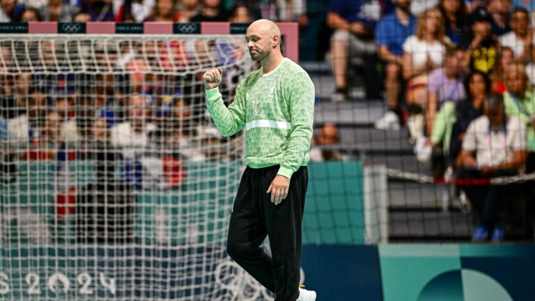 1,3K Vincent Gérard et l’Equipe de France masculine de handball ont été éliminés en quart de finale des JO de Paris 2024. Cruelle sortie pour le gardien mosellan, auteur d’une prestation énorme. Ils menaient pourtant de deux buts à douze secondes de la fin du temps réglementaire… Un jet de sept mètres, puis un ballon bêtement perdu par Dika Mem suivi d’une égalisation improbable plus tard, les Bleus se faisaient rejoindre par l’Allemagne (29-29), avant d’échouer en prolongation (35-34) de ce quart de finale des JO de Paris 2024. L’Equipe de France ne conservera pas son titre de champion olympique, malgré une prestation XXL de Vincent Gérard (24 arrêts à 47% de réussite). Le gardien mosellan, au même titre que Valentin Porte et la légende du handball Nikola Karabatic, tire sa révérence de la plus cruelle des manières. Pour la première fois depuis 2004, l’Equipe de France masculine de handball ne remportera pas de médaille olympique. Charge maintenant à leurs homologues féminines, et tout le contingent de Messines et d’ex joueuses de Metz Handball, de défendre les couleurs du handball français à Pierre Mauroy. Les Bleues d’Olivier Krumbholz défient la Suède de Tyra Axnér, ce jeudi (16 heures 30) en demi-finale des Jeux Olympiques de Paris 2024. Crédit photo : Baptiste Fernandez/Icon Sport