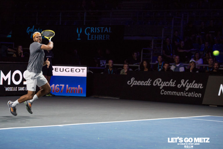 341 Il s’est fixé de grands défis pour cette fin de saison, dont une remontée au classement ATP qui ne laisse que très peu de place à l’imprévu, et il s’est donné les moyens d’y arriver en décrochant ce Dimanche son 4ème titre au Moselle Open en 5 finales jouées. La finale qui l’opposait à Aljaz Bedene n’a pas pour autant été une ballade sans accroc. Le Slovène était lui aussi venu avec des ambitions et cela s’est ressenti sur le court puisqu’il a arraché le premier set 7-6 (7-4 au jeu décisif). Dans un deuxième set du même acabit c’est cette fois le Français qui a réussi à sortir vainqueur d’un jeu décisif épineux: 6-7 (4-7 au jeu décisif). Enfin dans la troisième manche, la dynamique n’était plus la même, avec 14 points gagnants d’entrée, Tsonga à fait parler la poudre pour prendre les devants et ne plus jamais se faire rattraper. Bedene n’a pu grappiller que 3 petits jeux dans ce « money time » intense, soldé donc par un 3-6 en faveur du Français. Après le match Jo Wilfried Tsonga a mentionné une nouvelle fois son attachement au tournoi Mosellan en remerciant un public pleinement acquis à sa cause et qui aura joué un rôle primordial dans les moments difficiles de ce match. Avec ce 4ème Moselle Open (2011, 2012, 2015, 2019), Tsonga vient de remporter son 18ème titre en carrière et se positionne dans les temps vis à vis du marathon qui, si tout se passe bien pour lui, devrait le porter jusqu’à l’Open d’Australie avec un statut de tête de série. Crédit Photo: Matthieu Henkinet (photo prise le 20 Septembre)