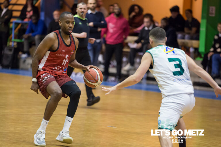 505 Ce samedi, les Metz Canonniers se déplacent sur le parquet du Joeuf Homécourt, pour l’un des grands rendez-vous de la saison : le derby lorrain. Sur le papier, le 11ème reçoit le 4ème de la Poule D. Mais dans ce match aussi bouillant, les classements n’ont guère d’importance. Avant un match qualificatif pour le Trophée Coupe de France qui se déroulera à Gentilly, face à la réserve du SLUC Nancy, les Metz Canonniers devront d’abord se pencher sur leur 6e match de championnat. Dans le toujours bouillant derby lorrain, les hommes d’ Anthony Tomba doivent poursuivre leur série, ce samedi à la salle Jean Wurtz de Joeuf. Moo Faye et Jordan Goeuriot, pièce maitresses Jordan Goeuriot face à Loic Akono Sur les postes extérieurs, il faudra cadenasser le duo Goeuriot-Faye qui pourrait mettre à mal la défense des Canonniers. En effet, Jordan Goeuriot avait rayonné l’an dernier en inscrivant 22 points. L’autre force de la maison gauloise repose sur son international sénégalais. Moo Faye, un arrière de grande taille. Ce dernier, qui tourne à 18 points de moyenne cette saison, sera une véritable menace pour les hommes d’Anthony Tomba. A l’intérieur, les Joviciens restent tout aussi dangereux. Le duo Salmon-Diatta est performant. La paire pourra rivaliser et donnera du fil à retordre à Dardaine et Florimont.Le « petit poucet » fera face à une armada attendue en play-offs, ce samedi soir. Une posture qui plait aux joueurs de Patrice Goeuriot, qui arrivent à se sublimer à chaque derby. Côté messin, hormis les anciens, peu de joueurs ont encore la culture de ce match spéciale. Ainsi, les nouveaux Canonniers Dardaine, Bouvret, Mbaye et Pourchot défieront des Joviciens, rompus à l’art de cette bataille, qui tenteront de décrocher leur premier succès à domicile cette saison. Vincent Pourchot de retour Vincent Pourchot Remis de sa blessure au genou, Vincent Pourchot devrait faire son retour et disputer son premier derby, frappé de son fétiche numéro 57. Seul Etienne Ory devrait manquer à l’appel ce week-end. En outre, Aurélien Salmon qui a manqué le dernier match (raisons personnelles), devrait être de retour pour le Joeuf Homécourt Basket. Le natif de Nilvange connait bien Vincent Pourchot puisqu’ils ont évolué dans le même club lors de leurs débuts, il y a de cela deux décennies. Le bouillant derby entre Joeuf Homécourt et les Metz Canonniers c’est ce samedi à 20 heures, à la Salle Jean Wurtz, pour le compte de la 5e journée de Nationale 2. Crédit photo : Matthieu Henkinet (Let’s Go Metz)