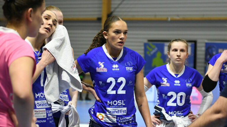 746 Le TFOC s’incline à Marcq-en-Barœul pour la troisième fois de la semaine. Les Bleues ont été trop en difficulté au bloc et à l’attaque pour espérer mieux. Le TFOC chute une nouvelle fois contre Marcq-en-Barœul cette saison. Alors que les Bleues avaient su s’imposer deux semaines plus tôt sur le même terrain, elles n’ont pas réussi à rééditer leur performance. Terville Florange enchaîne une troisième défaite consécutive après Le Cannet en championnat et Venelles en Coupe de France. Les protégées de Romain Pitou ont subi l’intensité adverse pendant trop longtemps pour espérer un meilleur résultat. Toujours bloquées à 28 points, elles perdent une place en étant désormais au 9e rang au classement. Un trou d’air Les débuts de set s’annonçaient décisifs pour le match. C’était finalement en milieu de manche que l’avantage basculait pour l’une ou l’autre équipe. À ce jeu, Marcq-en-Barœul prenait souvent le meilleur sur le TFOC. Si les Bleues débutaient plutôt bien leur partie, elles se faisaient totalement surprendre (15-10). Elles étaient alors incapables de répondre à l’intensité adverse. Comme souvent, les Marcquoises parvenaient à trouver une énergie supplémentaire sur leur terrain. Ni Aliyah Carter, ni Karolina Fricova ne trouvaient de solution à l’attaque (25-18). Le rebond du TFOC… Déjà en difficulté, les Mosellanes étaient contraintes de réagir rapidement. C’étaient ce qu’elles faisaient en prenant une avance au tableau d’affichage (6-10). Mais l’inconstance de Terville Florange se payait immédiatement. Marcq-en-Barœul revenait à égalité. Une véritable bataille s’entamait entre les deux formations pour le gain de la deuxième manche. Chacune pensait avoir pris une option avant le retour de l’autre. Avec une meilleure efficacité, les coéquipières de Karson Bacon signaient les trois derniers points pour revenir dans le match (22-25). Avant la chute Après être revenues au score, les Bleues pensaient être complètement lancées dans la rencontre. Elles commençaient à prendre le dessus sur leur adversaire (9-13). Entrée en cours de jeu dans le deuxième set, Saana Lindgren offrait une solution bienvenue à l’attaque à la place de Megan Wilson, encore en difficulté dans ses performances. Pourtant, Marcq-en-Barœul ne lâchait rien. Alexandra Dascalu et Channon Thompson montaient clairement d’un niveau. Les deux attaquantes permettaient à leur équipe de recoller une nouvelle fois (15-15). Tout se jouait alors en fin de manche. Alors que le TFOC obtenait une balle pour prendre les commandes de la partie, il laissait filer sa chance à l’image des derniers matchs (27-25). La perte de ce set coupait les jambes aux Mosellanes. Si elles parvenaient à faire bonne figure sur les premiers points, elles lâchaient rapidement comme en début de rencontre (15-10). Terville Florange était un déficit au bloc par rapport à son adversaire. Les joueuses de Romain Pitou manquaient aussi trop d’efficacité à l’attaque pour embêter davantage Marcq-en-Barœul. Après avoir pris sérieusement les devants, les Marcquoises déroulaient et concluaient sans difficulté (25-17). Marcq-en-Barœul 3 – 1 TFOC Sets : 25-18, 22-25, 27-25, 25-17. Composition Marcq-en-Barœul : La Rosa, Kotar, Thompson, Dascalu, Kneiflova, Pavicic et Benoit (L). Entrée en jeu : Arbos. Composition TFOC : Carter, Glaab, Kulikova, Fricova, Wilson, Bacon et Coulet (L). Entrées en jeu : Lindgren, Chereau, Louessard. Crédit photo : Mikaël Frank – Let’s Go Metz (archive).