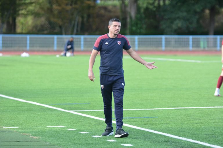 337 Grégory Proment peut être fier de ses joueurs après cette victoire face au SAS Epinal. (Photo : Mathieu Hohlfeld) Troisième journée de National 2 pour les hommes de Grégory Proment, après une victoire et une défaite depuis le début de la saison, une bonne opération était possible pour la réserve du FC Metz face au quart de finaliste de la Coupe de France la saison passée.La réserve du FC Metz s’est présentée avec un 4-3-3 assez classique pour cette 3ème rencontre, avec l’expérimenté Paul Delecroix toujours de la partie. En effet, ce dernier semble se plaire avec les jeunes du centre de formation, il apporte une certaine rigueur et une communication de choix dans un effectif dont la moyenne d’âge est bien plus faible que celle du groupe professionnel.La composition du FC Metz : Delecroix ; Nobili – Lacroix – Peugnet – Akpa ; Benigni – Touré – Cachbach ; Gueye – Robin – Perrey. La composition messine. (Photo : Mathieu Hohlfeld) La première demie heure de jeu fut assez équilibrée, même si les jeunes grenats ont montré plus de choses sur le plan offensif. Comme à l’accoutumée en National 2 la rencontre fût très disputée sur le plan physique, et à ce petit jeu les spinaliens se sont montrés plus tranchants et ont poussé à la faute. Quelques frappes cadrées lors de cette première mi-temps de part et d’autre, mais rien d’assez probant pour inquiéter les deux gardiens. Le FC Metz s’est heurté à une solide défense. Pour rappel, le S.A.S Epinal n’a pour l’instant encaissé aucun but depuis le début de la saison… un candidat à la montée ?En début de seconde période Milan Robin s’est vu sanctionner d’un carton jaune pour excès d’engagement.Les premiers changements côtés messin intervinrent à la 50ème minute de jeu : Remplacement de Sonny Perrey par Maidine Douane, ce dernier semblant souffrir du dos.Le S.A.S Epinal pousse alors pour marquer, et libère des espaces pour les grenats. Maidine Douane, tout frais, est lancé en profondeur par Isyakha Touré. Sur une parfaite remise en retrait, la frappe de Milan Robin manque le cadre.Le jeu est décousu haché par de nombreuses fautes de part et d’autres, l’ambiance Derby se fait sentir.Mais à la 75ème minute de jeu, un missile de Milan Robin trouve le cadre, suite à une magnifique action collective des Grenats ! 1-0 pour le FC Metz. Le buteur Milan Robin, regard tueur. (Photo : Mathieu Hohlfeld) Menés par les gamins messins, les vosgiens sont frustrés. Les esprits s’échauffent et une bagarre éclate entre deux joueurs, rapidement contenue par le reste des effectifs. La fin de match s’annonce explosive. Les spinaliens poussent de plus belle mais les grenats tiennent pour l’instant, l’organisation défensive est solide et efficace. Lenny Lacroix est impérial, autant sur le jeu aérien que dans son marquage. Le club a assurément bien fait de verrouiller cette pépite avec un contrat professionnel. Paul Delecroix et Lenny Lacroix (encore) enchaînent les belles actions défensives sur corner, cette solidité montre une réelle montée en puissance du jeune défenseur.Fin du match, le FC Metz l’emporte sur la plus petite des marges dans ce derby lorrain. Une fin de match houleuse a donné quelques frissons aux jeunes messins mais sans gravité. Peu adroits sur les phases offensives, les grenats ont surtout brillé par une solide défense et un gardien au rendez-vous. Est-ce que la réserve du FC Metz peut encore viser plus haut ? La montée est certes impossible, le National 2 est le niveau maximal pour une réserve en France, mais une longue saison d’apprentissage attend ce groupe qui est en bonne voie pour viser le haut du tableau.