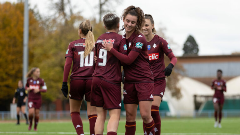582 Dans un match sensationnel, le FC Metz s’est imposé 8 à 0 pour son entrée en Coupe de France, contre le CA Paris 14. Les Messines ont pulvérisé des Parisiennes inexistantes dans cette rencontre. C’était un bel après midi ici au stade Dezavelle, en marge du premier tour fédéral de la Coupe de France. Le spectacle fût au rendez-vous entre le FC Metz et le CA Paris 14, avec une avalanche de buts. Une rencontre totalement maîtrisée par les grenats qui ont déroulé du début à la fin. Une victoire 8 à 0 qui permet aux messines de passer au prochain tour au cours duquel elles seront confrontées au FC Rueil-Malmaison.Composition messine : Francart – Laurier (Rigaud 71′), Niakaté, Leroy, Petitjean, Richard – Boilesen (Oliveira Bras 45′), Morel (C) – Calba (Grassetti 76′), Picard, Kone (Boutaleb 71′) Le FC Metz efficace d’entrée Dès les premières minutes, les Messines ont pris le dessus sur les Parisiennes, en les asphyxiant dans leur moitié de terrain. Malgré une forte domination, les grenats ont d’abord peiné à se procurer de réelles occasions dans le premier quart d’heure. La première tentative de Kelly Kone fut néanmoins la bonne (1-0, 17′). Elle peut remercier Lucie Calba, la jeune Messine, qui a fait preuve d’altruisme en offrant ce but à sa partenaire. Les Messines assouvissaient alors leur large domination. Après avoir fait tourner le ballon pendant quelques minutes, elles ont trouvé des brèches dans la défense parisienne. Ces failles ont permis au FC Metz d’inscrire trois buts coup sur coup (28’, 31’).D’abord grâce une nouvelle offrande de Lucie Calba, pour Océane Picard (2-0, 26′). Cette dernière s’offrait un doublé d’une magnifique reprise de volée deux minutes plus tard (3-0, 28′). Marjorie Boilesen enfonçait le clou en déviant dans les filets un centre de Kelly Kone (4-0, 31′). Rien n’allait plus pour les Parisiennes, dépassées par cette pluie de buts… Les festivités continuent Au retour des vestiaires, la pluie s’est invitée au rendez-vous mais elle n’a pas gâché la fête. Les Messines ne semblaient pas vouloir s’arrêter là. En effet, les grenats sont revenues en seconde en mi-temps avec les mêmes intentions et la même domination qu’en première période. En « un contre un », Océane Picard (50’) et Kelly Kone (59’) ont d’abord manqué l’occasion d’aggraver la marque. Le FC Metz concédait néanmoins son unique occasion à la 66ème minute, sur l’un des rares mouvements parisiens où la défense a été prise au dépourvu.Heureusement, Emma Francart et sa défense ont repoussé deux frappes parisiennes sur la ligne. Suite à cela, les grenats ont réagi avec un doublé coup sur coup de la jeune Luisa Oliveira Bras (70’ puis 75’), entrée en jeu à la mi-temps, portant ainsi le score à 6-0. Une nouvelle fois, d’une belle passe en retrait, Lucie Calba a fait preuve d’altruisme. Celle-ci aurait pu finir son action mais elle a préféré offrir le 5e but du match à son acolyte. La jeune attaquante a délivré trois passes décisives au total, avant de céder sa place. L’après midi était loin d’être fini puisque Ottilia Grassetti et Océane Picard cloturaient le festival messin, inscrivant le 7e et le 8e but d’une rencontre à sens unique. Le FC Metz s’impose donc logiquement 8 à 0 face au CA Paris 14. Les grenats passent au tour suivant en Coupe de France. Prochain rendez-vous pour les joueuses de Jessica Silva, ce samedi 26 novembre à domicile, où les messines affronteront Orléans pour la 9ème journée de D2 Féminine, coup d’envoi à 18H à Dezavelle ! Crédit photo : Julien Buret/LGM