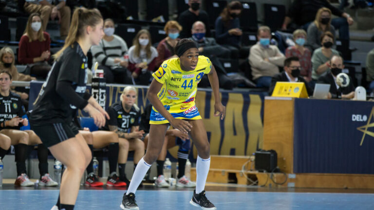 2,2K Après deux saisons sous les couleurs de l’OGC Nice Handball, Laureen Dembélé jouera à Plan de Cuques jusqu’en 2026. L’aventure niçoise de Laureen Dembélé prendra fin en juin au même titre qu’Anne-Emmanuelle Augustine. Si cette dernière est prévue pour être le futur binôme de Sarah Bouktit dès la saison prochaine, la première quittera les Alpes-Maritimes pour rejoindre les Bouches-du-Rhône et l’ambitieux Plan de Cuques. Avec la Belge Nele Antonissen, c’est la deuxième recrue officialisée par le club marseillais. Actuellement, sixième de Ligue Butagaz Énergie, Plan de Cuques poursuit la construction de son effectif en ayant pour ambition de voir la scène européenne dans les prochaines années. Ex-pensionnaire de la réserve messine, Laureen Dembélé a poursuivi sa progression sous la houlette de Clément Alcacer (lui aussi en partance pour Dijon), en devenant un élément fort du dispositif défensif niçois après avoir découvert l’exigence de la LBE et de la Ligue des Champions avec Metz Handball. À partir de la rentrée 2024 et pour les deux prochaines saisons, c’est au tour d’Angélique Spincer de profiter du potentiel de la jeune Arrière droite pour laquelle elle ne tarit pas d’éloges dans le communiqué du club. « Nous sommes très heureux d’accueillir Laureen dans les rangs du HBPC. Dotée d’un physique intéressant, elle apportera une nouvelle dimension à notre secteur défensif ainsi qu’à notre côté droit d’attaque. Le potentiel de cette jeune joueuse est indéniable, à nous de l’accompagner pour lui donner le maximum de confiance pour qu’elle puisse faire progresser l’équipe ». Après Daphne Gautschi, Lalie Vernay et Laura Fauvarque, la post-formation messine continue donc de s’accroître au sein du club provençal. Crédit photo : Matthieu Henkinet/Let’s Go Metz (archive)