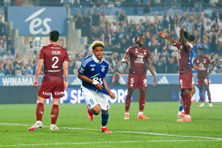 3,5K Battu en fin de match à Strasbourg, le FC Metz voit le maintien direct s’éloigner. Les Grenats devront passer par la case barrages pour se sauver en Ligue 1. Attention, une catastrophe peut en appeler une autre… On aurait pu ouvrir cet article avec bon nombre de superlatifs sur le roi Georges Mikautadze. Premier buteur du derby de l’Est (0-1, 54e), l’international Géorgien a encore éclaboussé de toute sa classe un match morose, où les Grenats n’ont encore proposé que trop peu de choses dans le jeu. Cette ouverture du score avait pourtant donné de l’allant aux hommes de Laszlo Bölöni. Au bout d’une chevauchée exceptionnelle, l’attaquant messin aurait même pu faire le break, mais sa frappe limpide trouvait le poteau (78′). Quelques instants plus tard, servi par Mikautadze, encore, Kevin Van den Kerkhof aurait pu, lui aussi, tuer le match et se faire pardonner de sa prestation catastrophique. Raté.Le FC Metz aurait pu se contenter de tenir le score. Encore raté. En à peine trois minutes, le club à la Croix de Lorraine s’est liquéfié et a trouvé le moyen de tout gâcher. Gâcher une dernière bataille à distance avec Nantes et Le Havre. Gâcher, aussi, une place officiellement assurée en barrages. Il aura fallu deux buts d’Emanuel Emegha (1-1, 89′) et Andrey Santos (2-1, 90’+1) pour tout changer, et passer au révélateur toutes les lacunes messines. Les deux seuls tirs cadrés du RC Strasbourg Alsace dans la rencontre. On frôle la faute professionnelle. On n’omettra volontairement d’évoquer les trois changements (90’+4 et 90’+5) plus que tardifs de Laszlo Bölöni, après que le bateau ait coulé. Témoignage d’un entraîneur dépassé et emmuré dans ses idées. Georges Mikautadze avait pourtant, une nouvelle fois, porté le FC Metz sur son dos… Le FC Metz maintient le FC Lorient en vie Avec cette défaite honteuse à Strasbourg, le FC Metz (16e, 29pts, – 21) ne peut désormais plus rattraper Nantes (14e, 33pts, – 21), officiellement maintenu. Le Havre (15e, 32pts, – 10) reste mathématiquement à portée des Grenats, mais aucun scénario imaginable ne pourrait inverser les positions. En effet, le FC Metz recevra le PSG pour le compte de la dernière journée de Ligue 1. Si l’une de ces deux formations devait remporter la rencontre sur un score fleuve, ce ne serait certainement pas celle de Laszlo Bölöni.Le club à la Croix de Lorraine reste donc sous la menace de Lorient (17e, 26pts, – 28), malgré la défaite des Bretons (3-1) à Marseille ce dimanche. Les Merlus recevront Clermont, déjà relégué, lors de la dernière journée du championnat et pourraient faire trembler le FC Metz jusqu’au bout, en dépit d’une différence de buts largement défavorable. Quand bien même les Grenats arriveraient en barrages, dans quel état psychologique seraient-ils pour affronter une équipe de Ligue 2 aux dents longues ? Au fond, cette équipe n’a-t-elle tout simplement pas… ce qu’elle mérite ? Crédit photo : Loic Baratoux/FEP/Icon Sport