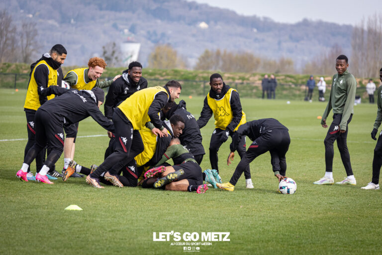 899 Le FC Metz est dans un tournant de la saison. Chaque match sera joué comme une finale avec comme objectif la montée en Ligue 1. Ce jeudi, en conférence de presse, László Bölöni a fait le point sur un effectif incertain à quelques heures d’un match de la plus haute importance. À quelques jours d’un déplacement périlleux en terre stéphanoise, László Bölöni a fait le point sur l’effectif en conférence de presse. Et quelques absences majeures sont à déplorer dans l’effectif Grenat. Malgré tout, le FC Metz n’aura pas le droit à l’erreur lors de cette 32ème journée de Ligue 2 pour rester dans la course à la montée. Les pertes se multiplient dans l’effectif du FC Metz En conférence de presse, le coach messin a confirmé que des blessures étaient venues impacter l’équipe. « Ces derniers jours, nous avons eu quelques soucis, mais on attend le rapport médical », ajoutait László Bölöni. En marge de la conférence de presse, les jeunes milieux de terrain Lilian Raillot et Arthur Atta n’étaient pas présent à l’entraînement. La potentielle absence de ce dernier serait un réel manque dans le sprint final.Alexandre Oukidja, le gardien titulaire, était également absent à l’entraînement. Un temps incertain, le portier figure finalement dans le groupe et devrait tenir sa place face à Saint-Étienne. En cas de pépin, Ousmane Ba pourrait le suppléer. Le sénégalais n’a plus joué avec l’équipe première depuis septembre dernier. De leur côtés, Oussmane Kebe et Marc-Aurèle Caillard se sont entraînés à part. Les deux joueurs reviennent tout doucement sur les terrains. Il faudra suivre leur évolution pour savoir s’ils pourront réintégrer le groupe d’ici à la fin de la saison. Enfin, depuis quelque temps, les joueurs ressentent de la fatigue à cause de l’accumulation des matchs et des entraînements. « Après la rencontre face à Bordeaux, les joueurs étaient fatigués. 80% de mes joueurs n’ont encore jamais joué dans un championnat aussi long et intense », expliquait László Bölöni. De son côté, Ablie Jallow ressent de la fatigue mais parvient à gérer la récupération. « C’est vrai que l’on se sent fatigué après les rencontres, mais on arrive bien à récupérer la semaine », racontait l’attaquant messin. Cela ne devrait pas s’arranger puisque le coach souhaite voir ses joueurs exhaler la transpiration à la fin des matchs. « J’adore les victoires quand le maillot sent la transpiration », confiait l’entraîneur messin. László Bölöni peut compter sur de nouvelles têtes Sofiane Alakouch, le latéral droit messin, a été victime d’une longue blessure. Pour son plus grand bonheur, il a pu refouler les pelouses de Frescaty et réintégrer le groupe. « Sofiane Alakouch a fait son retour dans l’effectif lors de la séance d’entraînement d’hier. Cependant, on ne peut pas dire qu’il est prêt à rejouer des matchs en championnat », annonçait le coach du FC Metz. Son retour va faire un grand bien puisqu’il pourra suppléer Koffi Kouao. Malick Mbaye et Pape Amadou Diallo, les deux Sénégalais récemment arrivés de Génération Foot, se sont entraînés avec le groupe professionnel. Néanmoins ils vont devoir travailler dur pour rejoindre Lamine Camara qui a connu sa première titularisation face à Bordeaux avec l’équipe première. #ASSEFCM [ ℙ𝕣𝕠 ]🔥 Le groupe messin convoqué pour le déplacement à Saint-Étienne est présenté par @EauCarola.Carola, partageons le goût d'être ici ➡️ https://t.co/eJKzQM6SEm pic.twitter.com/TRED2BucLG— FC Metz ☨ (@FCMetz) April 21, 2023 Photos : Lucas Deslangles / Let’s Go Metz