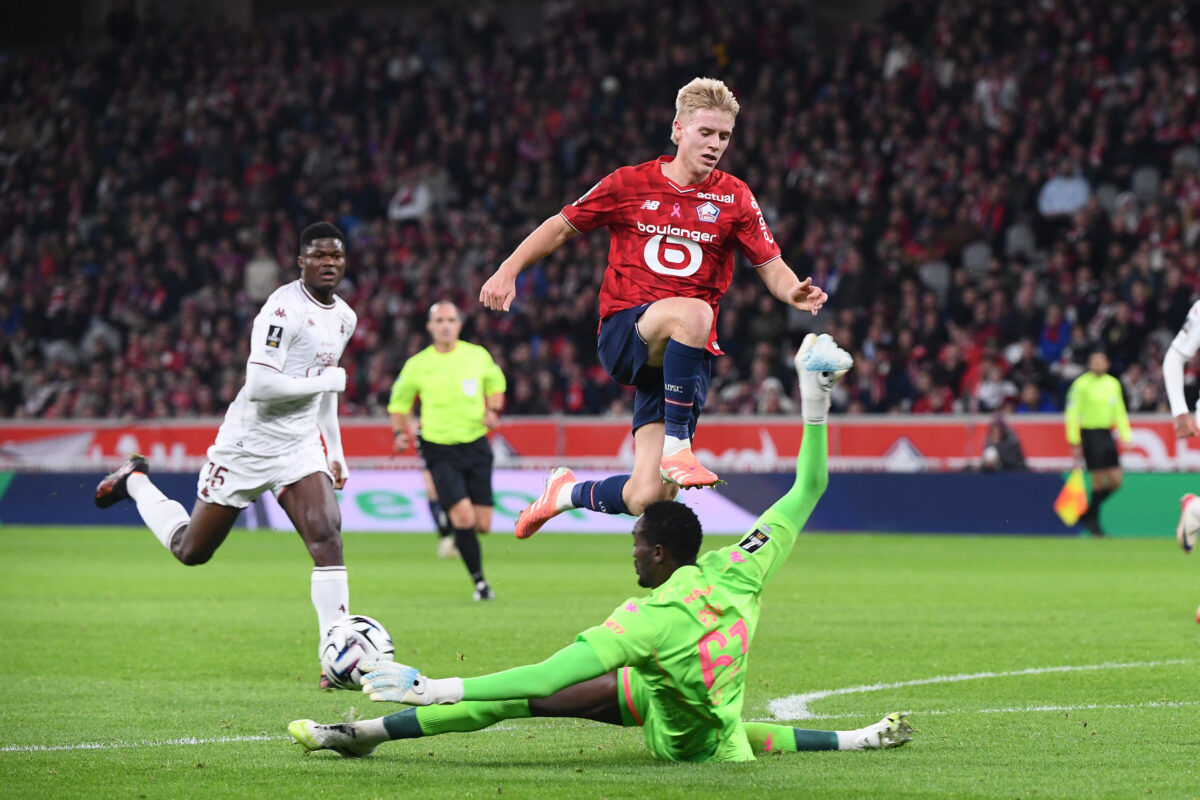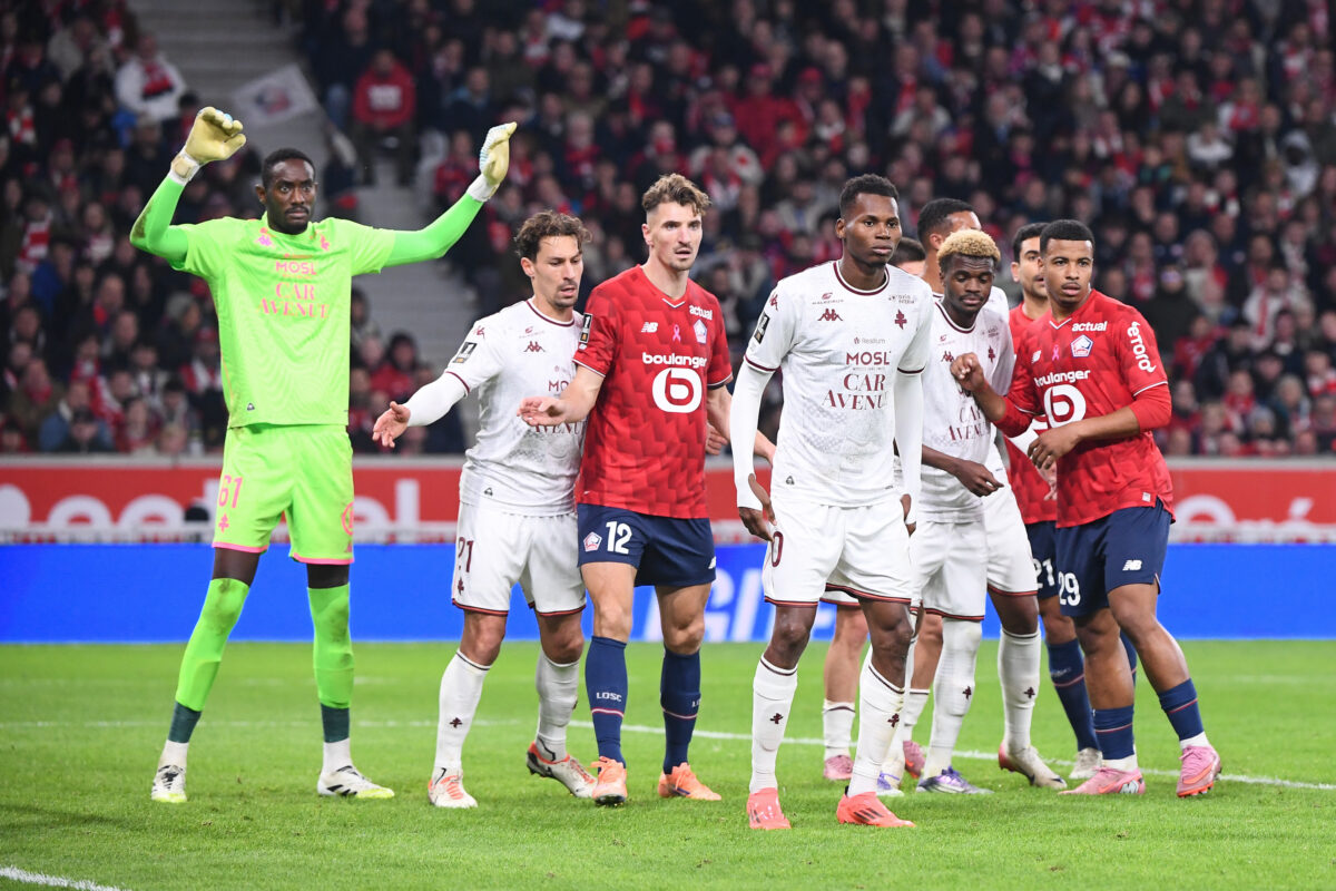193 Nouvelle déroute pour le FC Metz face à Lille, dans un début de saison qui ne lui épargne décidément rien. Malgré une composition inédite, les Grenats ont pris une nouvelle sanction contre une équipe du LOSC qui s’est baladée sur sa pelouse (6-1). Il n’y a rien à faire. Les semaines se suivent et les dimanches se ressemblent. Il n’y avait, certes, sans doute pas grand chose à attendre de ce match contre l’un des équipes cadors de la Ligue 1, le FC Metz ne boxant évidemment pas dans la même catégorie. Mais les plus optimistes pouvait espérer prétendre à un scénario alternatif à ceux connus jusqu’à présent, avec une composition pour le moins audacieuse. Et pour cause, deux tauliers de l’effectif ont vu une grande partie de la rencontre depuis le banc : Pape Sy a été préféré à Jonathan Fischer et, surtout, Gauthier Hein, laissé au profit de Giorgi Abuashvili. Dans ce qui ressemblait à un baroud d’honneur, Stéphane Le Mignan tentait l’électrochoc pour réveiller l’équipe et, pourquoi pas, créer la surprise… « Même si Jonathan Fischer n’avait pas fait d’erreurs importantes, on voulait aussi provoquer quelque chose. » Quant au choix lié au capitaine, « c’était essentiellement par rapport au profil de joueur qu’on voulait mettre, plutôt de vitesse avec Abuashvili et Sabaly« . Photo : Philippe Lecoeur/FEP/Icon Sport. Une valise de plus Le coup était audacieux, mais il n’a malheureusement rien donné. Le FC Metz entamait le match en souffrance et il fallait des arrêts déterminants de Pape Sy pour garder les Grenats dans le coup (9′, 10′). En réaction à l’armada lilloise, Cheikh Tidiane Sabaly tentait de sonner la révolte par quelques tentatives d’incursion dans la surface, sans succès… Puis arrivait ce qui devait indéniablement arriver : le premier but de la partie, du pied d‘Hamza Igamane, qui ajustait le portier messin d’une frappe croisée dans son petit filet droit (1-0, 24′). Si il fallait bien admettre son impuissance sur ce coup, le peu de satisfaction obtenu par le gardien messin s’envolait quelques minutes plus tard, à peine. Pape Sy manquait sa relance et envoyait le ballon dans les pieds de Félix Correia. Le Nordiste ne se faisait pas prier pour le lober et alourdir la marque (2-0, 32′). L’arc électrique retournait à l’envoyeur… Photo : Philippe Lecoeur/FEP/Icon Sport. La physionomie du match était respectée. Et son épilogue par la suite – l’aboutissement d’un véritable fesitval côté nordiste, qui a régalé son public avec six buts inscrits –, n’est qu’une suite logique des efforts employés face à l’insuffisance des Grenats, inférieurs dans tous les compartiments du jeu et sans inspiration. Quant à la rentrée de Jonathan Fischer en lieu et place de Pape Sy, sorti sur civière après un contact avec Osame Sahraoui (72′, lire ci-dessous), elle ne changeait pas le cours du match. « Je pense que ce n’est pas le même match qu’à Toulouse, où on avait failli gagner les premières minutes. Là, on a essayé de montrer des choses au début de match, d’essayer de tenir, mais l’adversaire était trop fort, simplement », concède Stéphane Le Mignan. Seule (très légère) satisfaction, le deuxième but en Ligue 1 du rentrant Ibou Sané, qui adressait un boulet de canon dans la lucarne du gardien lillois et sauvait le peu d’honneur qui restait à sauver pour le FC Metz (6-1, 90+5′). « Assister à tout ça en tant qu’acteur, c’est terrible » « On n’a pas le niveau pour la Ligue 1 », constatait Jessy Deminguet devant les journalistes après la rencontre. « On n’a pas les clés, pas les moyens de faire face à ce genre d’adversaire », abonde Gauthier Hein, qui confie qu’« assister à ça tout en étant acteur, c’est terrible… C’est très dur à accepter. » Après avoir enchaîné les déclarations affichant un optimisme « de façade » ces dernières semaines, l’heure n’est plus à se voiler la face pour les joueurs. Et pour cause : après neuf matchs, les Grenats n’ont pas réussi à gagner une seule rencontre, ont encaissé vingt-six buts (une moyenne de 2,88 par journée de championnat) pour seuls six marqués, et ne semblent absolument pas voir une éclaircie apparaître et qui permettrait de garder un brin d’optimisme. « On va continuer à se réfugier dans le travail », ne peut que dire le capitaine Gauthier Hein. Et de faire le dos rond lors du prochain match à domicile, contre le RC Lens de Matthieu Udol. En tout cas, essayer… Des nouvelles rassurantes pour Pape Sy Les tribunes ont retenu leur souffle pendant de longues minutes après le contact entre le gardien messin et son vis-à-vis à la 71è minute. Le jeune portier sénégalais avait perdu connaissance et n’était plus en état de garder sa place dans les cages. Plus de peur que de mal, finalement : dimanche soir, Pape Sy était en observation à l’hôpital et le personnel médical se voulait rassurant sur son état de santé. Sa disponibilité pour les prochaines rencontres reste toutefois compromise. Photo : Philippe Lecoeur/FEP/Icon Sport. au stade Pierre-Mauroy de Villeneuve-d’Ascq (Nord), Mehdi Abirez. Lille OSC 6 – 1 FC Metz LOSC : Özer – Meunier, Mbemba, Mandi (Ngoy, 68′), Perraud – André (Cap.), Bouaddi (Mukau, 45′) – Correia (Broholm, 83′), Haraldsson, Fernandez-Pardo (Bentaleb, 68′) – Igamane (Sahraoui, 68′). FC Metz : Sy (Fischer, 78′) – Kouao (Mélières, 61′), Gbamin, Yegbe, Touré (Hein, 61′) – Stambouli (Cap.), Deminguet (Guerti, 90′)- Tsitaishvili, Abuashvili (Bokele, 61′), Sabaly (I. Sané, 90′) – Diallo. Buts : Igamane (24′), Félix (32′, 53′), Perraud (65′), André (82′), Haraldsson (90+’), I. Sané (90+’). Avertissements : Mandi (21′), Le Mignan (25′), Bouaddi (36′), Deminguet (89′), Haraldsson (90+’). Arbitre : Benoît Millot. Photo : Philippe Lecoeu