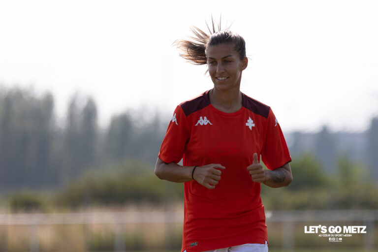 670 Coup de théâtre dans le mercato grenat ! Le FC Metz perd sa recrue phare. C’est la deuxième arrivée avortée de l’été. Coup dur. Elle avait participé à la reprise des entraînements avant de disparaître des radars. Lalia Storti met un terme à sa carrière. Le FC Metz perd donc sa recrue phare de l’été. Une arrivée avortée, la deuxième du mercato après celle d’Alexandra Atamaniuk il y a trois semaines. Coup dur pour les grenats et pour Jessica Silva. La coach canadienne rappelait récemment que l’un des objectifs de ce mercato était d’engager des joueuses d’expérience. Mais pour la seconde fois depuis le début de la préparation, le staff messin voit l’une de ses recrues annuler sa venue. « Court mais intense » Officialisée le 24 juin dernier, l’arrivée de Lalia Storti lançait un message fort aux autres écuries de D2 Féminine. Il faut dire que le CV de la milieu de terrain laissait rêveur. Avec ses dix saisons pleines en D1 féminine et deux en D2, Lalia Storti s’était dite fière et honorée de venir au FC Metz. Un passage qu’elle a qualifié de « court mais intense » dans un poignant communiqué où elle explique sa décision de se retirer des terrains. L’ex-Stéphanoise ne fera donc pas le bonheur du club à la Croix de Lorraine. La nouvelle saison de D2 Féminine débutera pile dans un mois, les 10 et 11 septembre prochains. Crédit photos : Julien Buret/LGM