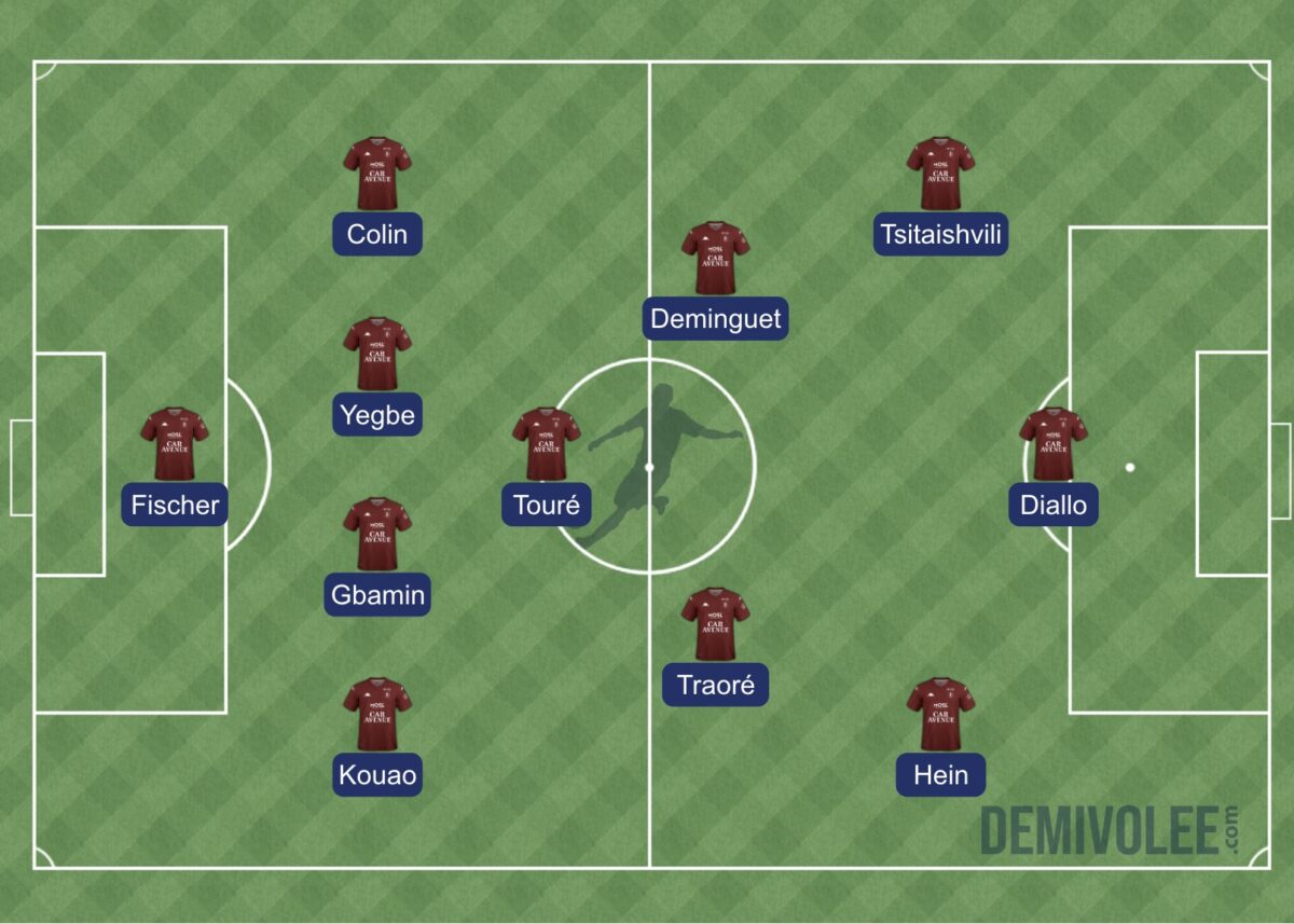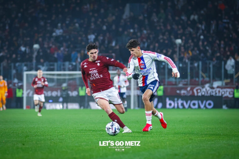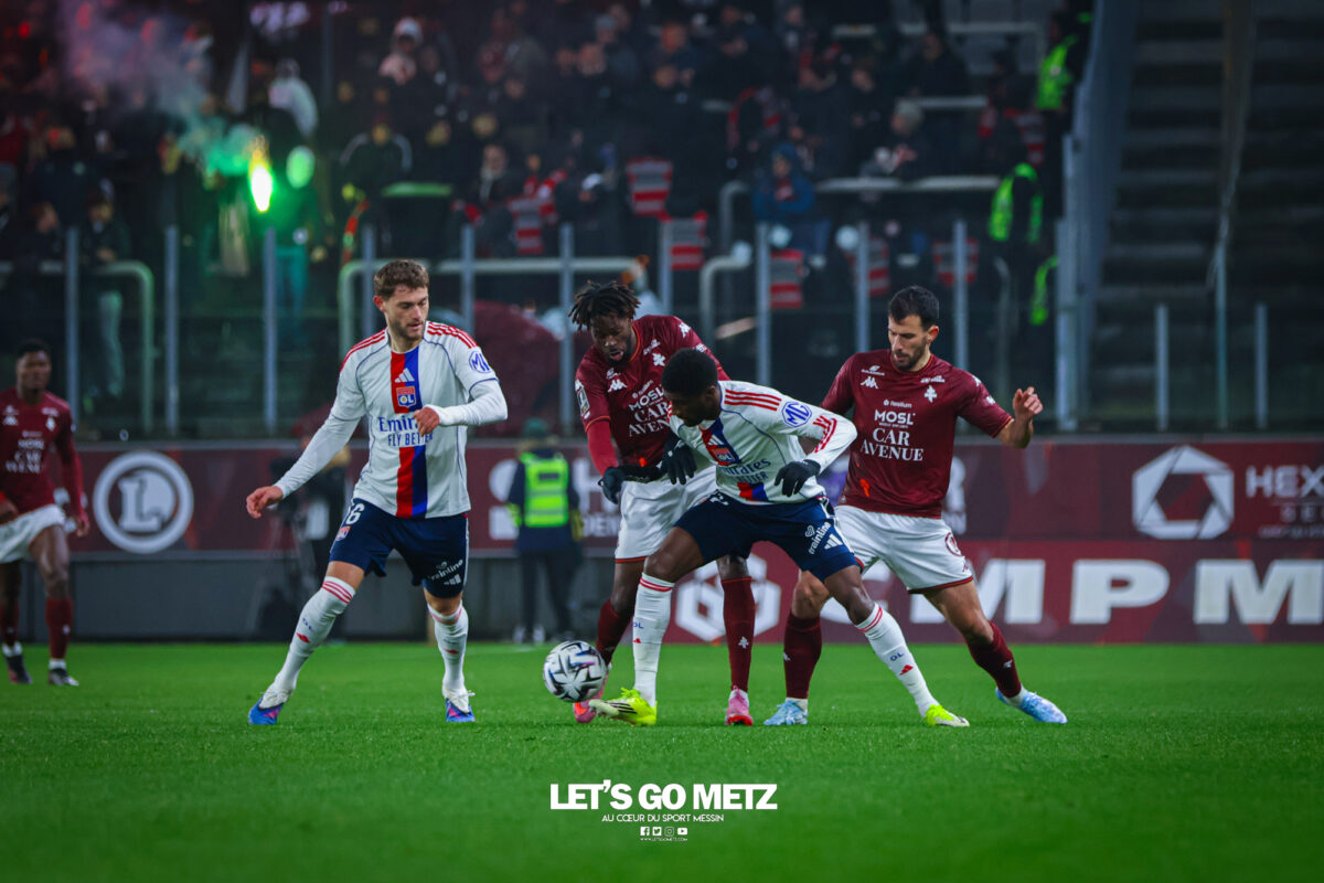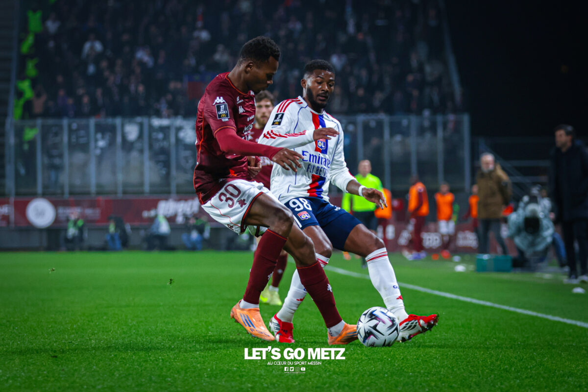 5,8K Pour la première de Benoît Tavenot en tant qu’entraîneur principal, le FC Metz a subi une lourde défaite 2-5 face à l’Olympique Lyonnais. Après avoir concédé quatre buts en première période, les Grenats n’ont pas pu recoller au score. L’électrochoc n’est pas pour tout de suite ! Moins d’une semaine après la nomination de Benoît Tavenot à la tête de l’équipe première, les Grenats retrouvaient Saint-Symphorien. Après sa défaite à Strasbourg, Metz devait faire face à Lyon dans le cadre de la 19ᵉ journée de Ligue 1. Pour cette rencontre, Tavenot pouvait compter sur le retour d’Habib Diallo, vainqueur de la Coupe d’Afrique des Nations 2025. Niveau tactique, Tavenot ne prenait pas de risques en alignant le 4-3-3 similaire aux rencontres précédentes. Onze de départ du FC Metz contre l’Olympique Lyonnais – 19ème journée – Ligue 1 Metz sombre totalement en première période Les dix premières minutes de cette rencontre étaient plutôt équilibrées. Chacune des deux équipes allait avoir son premier moment chaud. Giorgi Tsitaishvili était proche de faire la différence depuis son côté gauche, mais était bien stoppé par la défense lyonnaise (3e). Lyon aussi avait sa chance, en profitant d’un contrôle mal réalisé par Gbamin, donnant un face-à-face entre Afonso Moreira et le portier grenat Jonathan Fischer. Mais ce dernier remportait le duel (10e).La minute suivante allait marquer le début d’une véritable avalanche subie par les Grenats. Lancé en profondeur, Corentin Tolisso adressait une passe en retrait dans la surface pour Endrick, qui trompait Fischer (0-1, 11e). Cette ouverture du score allait être suivie par un nouveau but, cette fois-ci l’œuvre de Ruben Kluivert (0-2, 16e). Les Grenats restaient sans réponse à ces deux buts marqués en cinq minutes. Il faut dire que les Lyonnais savaient où appuyer. L’objectif était pour eux de jouer le plus possible dans le dos des Messins, notamment sur le côté gauche messin. Colin et ses coéquipiers n’arrivaient pas à couvrir ces appels de balle et étaient mis en difficulté. À la demi-heure de jeu, Metz allait encore s’enfoncer. Sur un dégagement de la tête pas assez appuyé de Terry Yegbe, Tyler Morton récupérait et armait une frappe qui laissait Fischer stoïque sur sa ligne (0-3, 32e). Finalement, ce troisième but allait réveiller le coach grenat et ses joueurs. Tout d’abord, Tavenot procédait à un changement de système, passant à trois défenseurs à l’arrière. Ensuite, Koffi Kouao, profitant d’un manque de vigilance sur une passe lyonnaise, se dirigeait droit vers le but adverse et trompait Dominik Greiff pour réduire la marque (1-3, 34e). Ce but donnait un court espoir aux joueurs et aux supporters de revenir dans le match. Lyon commençait à ralentir le rythme de son jeu, et Metz pouvait espérer en profiter. Malheureusement pour les Grenats, Endrick allait encore poser des problèmes. Lancé par Morton, Endrick, à la limite du hors-jeu, partait seul en face-à-face avec le portier grenat, et le battait une deuxième fois (1-4, 45+1e). La coupe était pleine pour les supporters de Saint-Symphorien, qui raccompagnaient les joueurs de Tavenot aux vestiaires sous les huées. Metz joue mieux… mais sans renverser la rencontre Interrompu par un magnifique feu d’artifice de la tribune Est, le début de cette deuxième mi-temps suscitait quelques interrogations. Tavenot ne se décidait pas à faire de changements pour le début de cette reprise. Mais finalement, à l’heure de jeu, le coach messin en avait assez vu et procédait à trois changements, sanctionnant la contre-performance de trois éléments : Alpha Touré, Terry Yegbe et Jessy Deminguet. Saint-Symphorien était alors plus qu’enchanté de retrouver Benjamin Stambouli sur le terrain. Believe Munongo, pour ses premières minutes sur un terrain de Ligue 1, et Michel Mboula contribuaient aussi au renouveau des Grenats durant cette seconde période. En effet, la circulation de balle devenait meilleure, et Metz allait être récompensé. Sur un très beau centre de Kouao, Diallo s’illustrait d’une volée que Greiff ne pouvait que toucher sans l’arrêter (2-4, 64e). Le public de Saint-Symphorien se mettait alors à croire à un hypothétique retour. Cependant, les Grenats s’exposaient à de potentielles contre-attaques, comme avec Endrick, à deux doigts de tromper une nouvelle fois Fischer (59e). Cela ne dissuadait pas Metz de continuer à attaquer. Benjamin Stambouli, qui réalisait une bonne entrée en jeu, déclenchait une frappe obligeant Greiff à s’employer (66e). Le FC Metz mettait du rythme en jouant plus directement à l’entrée des vingt dernières minutes. Dans les dix dernières minutes, Tsitaishvili se mettait en avant, en amorçant une frappe qui obligeait encore Greiff à conserver l’avantage de deux buts (83e). Finalement, le dernier mot revenait aux Lyonnais et à Endrick. Bénéficiant d’un penalty sifflé en sa faveur, l’international brésilien en profitait pour inscrire un triplé (2-5, 87e). Un festival qui marquait la fin des hostilités, et une nouvelle défaite pour les Grenats. La crise de résultats continue pour le FC Metz avec une septième rencontre de suite en Ligue 1 sans victoire. Pour le moment, les problèmes observés avant le renvoi de Stéphane Le Mignan ne se sont pas estompés. Certes, il était encore trop tôt pour ressentir une éventuelle patte de Tavenot dans le jeu défensif des Grenats. Mais il est clair que le chantier est énorme. Les supporters seront très attentifs au déplacement de Metz à Angers, pour mesurer les progrès à ce niveau. Une rencontre qui aura lieu le dimanche 1ᵉʳ février 2026 à 17h15. Composition des équipesFC Metz : Fischer – Colin (Abuashvili, 78e) – Yegbe (Mboula, 62e) – Gbamin – Kouao – Traoré – Touré (Stambouli, 62e) – Deminguet (Munongo, 62e) – Hein (I. Sané, 