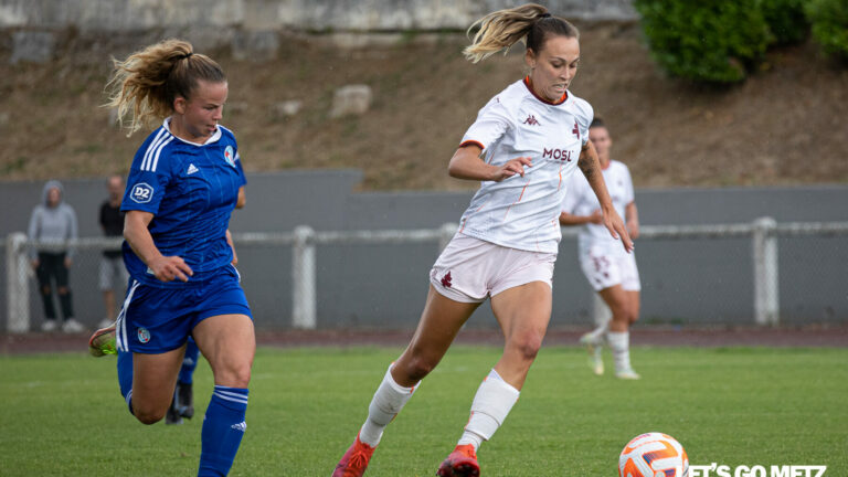 824 Les joueuses du FC Metz ont rendez-vous ce samedi en Alsace pour affronter le Racing Club de Strasbourg. Un derby de l’Est qui s’annonce passionnant pour clôturer la phase aller de D2F. La phase aller de la D2 Féminine s’achève ce weekend pour les Grenats. Le FC Metz se déplacera sur la pelouse du Racing Club de Strasbourg Alsace pour un derby très attendu. Les Messines, actuelles dauphines du leader lillois, restent sur une défaite surprenante à Nantes lors de la dernière journée. Nul doute que les protégées de Jessica Silva voudront se racheter et surtout laisser derrière elles des Alsaciennes qui pointent à la quatrième place, à seulement trois petits points. Un match couperet donc pour terminer le premier acte d’une saison passionnante. Dans le même temps, l’autre derby du weekend opposera le LOSC et le RC Lens (3e). Malheur aux vaincues. Un derby capital Les enjeux sont cruciaux ce weekend en haut de tableau puisque les quatre premiers se rencontrent. Après deux nuls concédés à Nantes puis à domicile face au CA Paris 14, le RCSA compte bien mener la vie dure au FC Metz et retrouver le chemin de la victoire. Pour cela, le club alsacien pourra compter sur un effectif talentueux, constitué de joueuses d’expériences. Parmi elles, d’anciennes pensionnaires du club à la Croix de Lorraine. Mathilde Dijon, Pauline Dechilly, Léa Munier et Latifah Abdu ont toutes porté le maillot grenat. Les ex-Messines Pauline Dechilly, Latifah Abdu et Léa Munier – Crédit photo : Alain Rauscher/RCSA Officiel Les joueuses de Vincent Nogueira font pour le moment mieux que l’objectif maintien défini en début de saison. Les Strasbourgeoises pourraient bien s’inviter sur le podium en cas de victoire samedi. Un derby n’est jamais un match comme les autres. Le dernier déplacement en Alsace la saison dernière s’était soldé par une lourde défaite 3-0 des Messines. Les Grenats sont prévenues. Il faudra se montrer sous son meilleur jour pour ramener quelque chose de Strasbourg. Coup d’envoi 14h00 au stade Jean-Nicolas Muller.