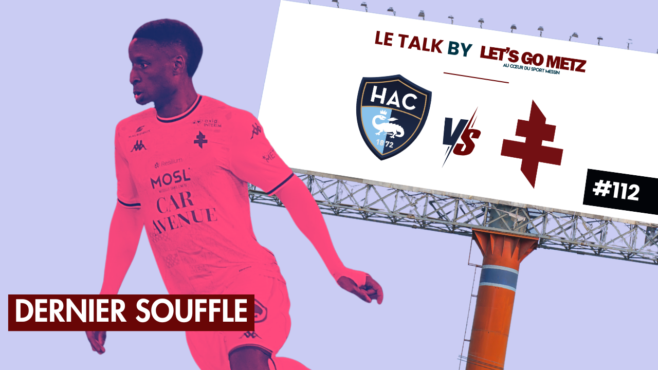 174 Retrouvez dès à présent le nouvel épisode du Talk by Let’s Go Metz, votre podcast au cœur du sport ! Retour aujourd’hui sur le match nul du FC Metz sur la pelouse du Havre. C’est l’heure de retrouver le nouvel épisode du Talk by Let’s Go Metz ! Gérald Russello et ses chroniqueurs reviennent sur le match nul complètement fou entre le FC Metz et Le Havre. Score final 4-4 entre les deux équipes et une descente pas encore validée à 100% même si désormais les mathématiques ne suffiront plus à prolonger l’espoir. Quelques satisfactions à noter, comme les prestations de Nathan Mbala et Jayhann Pandore, mais également le deuxième but en deux rencontres de Giorgi Kvilitaia. Retour sur le cas Gauthier Hein, le meneur de jeu dont l’avenir à Metz semble de plus en plus improbable. Quid du nouveau cycle que Metz va devoir entamer ? Voici le programme du jour pour ce 112ème épisode du Talk by Let’s Go Metz. Gérald Russello reçoit Rémi Alezine (L’Ami Hebdo) et Valentin Lachaux. Un podcast à retrouver également gratuitement en audio sur Spotify Présentation, montage et générique : Gérald RusselloMusique générique : « Miss A » (Jules Delorn)Musique habillage : « Proceed without a Pause » (The Roots)Visuels : Kevin Bignossi & Julien Buret