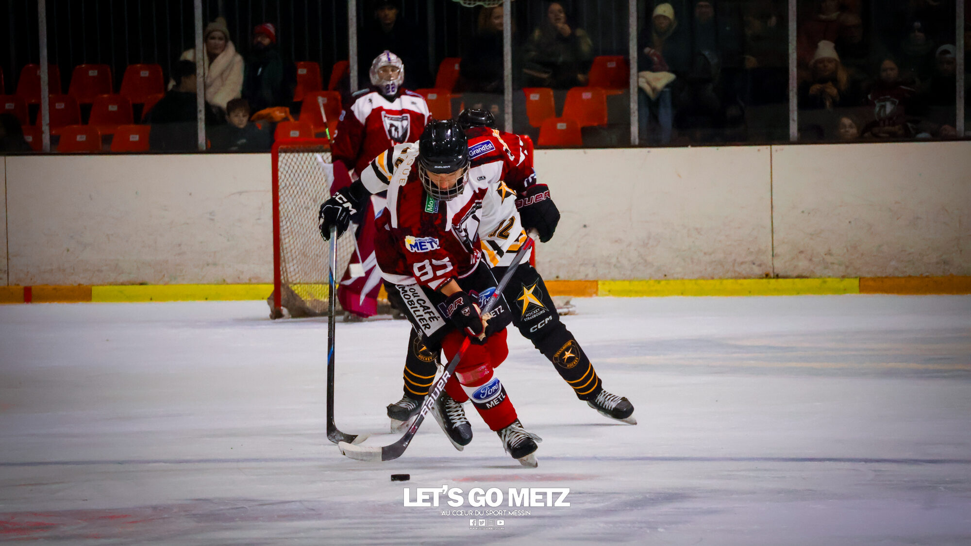 61 Ce samedi, le Metz Hockey Club s’est retrouvé impuissant face à Besançon et s’est incliné (3-8) dans un duel au sommet du championnat de D3. Fin de série pour le Metz Hockey Club qui tombe dans le piège des Bisontins. Après un début d’année parfaitement maîtrisé avec deux victoires consécutives, Metz (5ème) recevait Besançon (8ème). Un duel de taille entre deux équipes en pleine forme et qui a rapidement tenu ses promesses. Malgré l’ouverture du score de Lagoguey (1-0, 3’59) côté messin, Besançon regagnait les vestiaires avec l’avantage (1-2, 20′) au terme d’une première période disputée. De retour pour le second acte, les Graoullys perdaient totalement le fil de la rencontre et laissaient les Doubiens prendre le large. Un tournant dans la rencontre et une réelle claque pour Metz qui encaissait quatre buts, et sans en marquer le moindre, lors de la deuxième période (1-6). Il était difficile d’imaginer le Metz Hockey Club remonter la pente. Mais malgré le retard accumulé, les Graoullys trouvaient les ressources nécessaires pour accrocher Besançon lors du dernier acte (2-2) grâce à Upitis (2-6, 51’08) et Zeliska (3-8, 58’56). Le sursaut de fin de rencontre permettait certes d’obtenir le nul sur le troisième acte, mais pas de recoller les morceaux. Besançon ressort vainqueur de ce duel au sommet face à Metz (3-8). Les Graoullys auront l’occasion de réagir, encore une fois à domicile, face à Wasquehal le 30 janvier prochain. Mais attention, la tâche s’annonce difficile puisque les Nordistes sont premiers du championnat de D3 et n’ont pas perdu la moindre rencontre. Le Metz Hockey Club parviendra-t-il à créer l’exploit ? Metz Hockey Club 3 – 8 Besançon Doubs Hockey Club Tiers temps : 1-2, 0-4, 2-2Buts pour Metz : Lagoguey (3’59), Upitis (51’08) et Zeliska (58’56)Buts pour Besançon : Braga-Briquez (7’25 – 30’44), Horizral (19’04 – 25’08), Henry (21’02), Whelan (27’49), Stoll (55’57), Bonnet (57′) Image à la une : Zoé Keller/LGM (archive)
