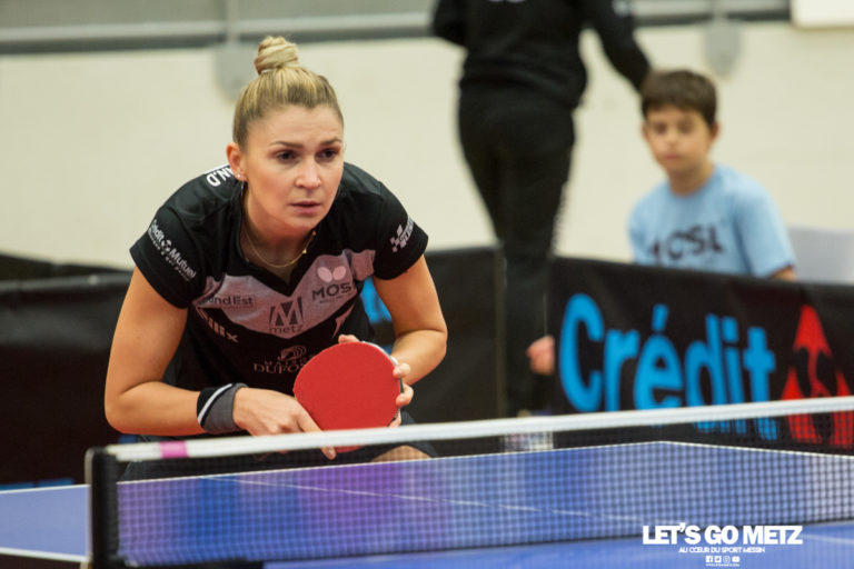 273 Invaincues depuis 2 matchs en championnat de France Pro A Dame, les messines se déplaçaient hier soir à Joué-Lès-tours, la lanterne rouge … Li He VS Grundisch Carole Dans le premier match de la soirée, c’est la Jocondienne qui empochait directement le 1er set de la rencontre [11-6], le ton était donné dans la salle Jean Bigot. Malheureusement pour le Metz TT et la messine, c’est bien la joueuse locale qui allait donner le premier point de la soirée à son équipe après avoir bataillé sec dans les deux derniers sets [12-10] et [11-9]. Lagsir Sannah VS Monteiro-Dodean Daniela Menée donc 1-0 chez la lanterne rouge, Loïc Belguise décide d’envoyer la plus expérimentée des joueuses messines pour tenter d’égaliser. Après avoir gagné les deux premiers sets [9-11] et [7-11], Daniela Monteiro-Dodean pensait avoir fait le plus dur, mais c’était sans compter sur le sursaut d’orgueil de la joueuse du TT Joué qui réduisait la marque dans cette manche [11-3]. Mais c’est bien la messine qui aura le dernier mot puisque dans le quatrième set, la récente championne d’Europe par équipe parvient à prendre le dessus sur son adversaire du soir [4-11] pour remettre les deux équipes à égalité 1-1. Zarif Audrey VS Diaconu Adina Malheureusement pour la jeune espoir roumaine ce fut un jour sans. La joueuse jocondienne, vice-championne de France en double en 2017, n’a laissé aucun espoir à Adina dans cette partie…[11-8] , [11-5] et [11-9]. Le Joué TT reprenait l’avantage 2 à 1. Li He VS Monteiro-Dodean Daniela Duel au sommet pour ce quatrième match, puisque les deux adversaires ont toutes les deux gagné leur première rencontre plus tôt dans la soirée. Le 1er set fut particulièrement accroché et c’est finalement la joueuse locale qui en sortait vainqueur [17-15], la messine faisait alors parler son expérience en empochant les 3 sets suivants [3-11], [7-11] et [10-12], ouf ! Comme dans la deuxième rencontre, c’est Daniela qui remet de nouveau les deux équipes à égalité 2-2. La cinquième manche serait donc décisive. Lagsir Sannah VS Grundisch Carole Et c’est avec un jeu blanc que la messine démarra de la plus belle des manières cette partie [0-11], de quoi montrer à son adversaire que les Mosellannes n’étaient pas venues ici en touristes. Lagsir Sannah la jocondienne, ne parviendra jamais à inquiéter Carole Grundisch [9-11], [4-11]. Le Metz TT s’impose 2-3 dans une partie qui a livrée toute ses promesses. Les messines sont provisoirement leader en attendant le Poitiers – Quimper de ce soir. Bravo les filles ! Le classement provisoire :
